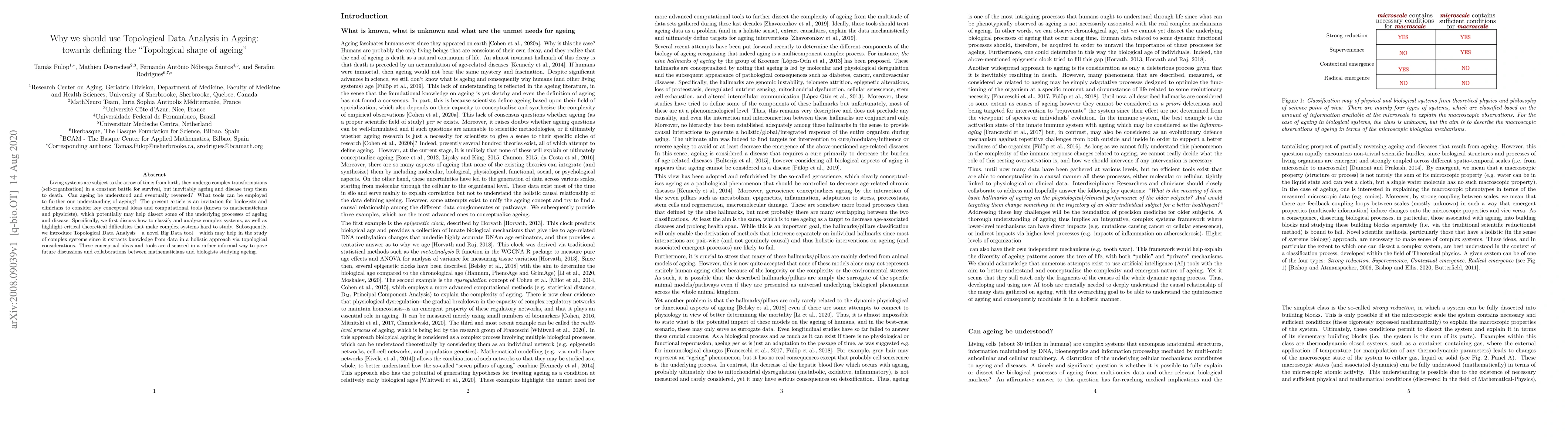 This paper advocates for the use of Topological Data Analysis (TDA) to better understand the complex processes of ageing and disease. It highlights TDA's potential to provide a holistic approach to studying complex systems, offering a new tool for biologists and clinicians to dissect ageing mechanisms.
