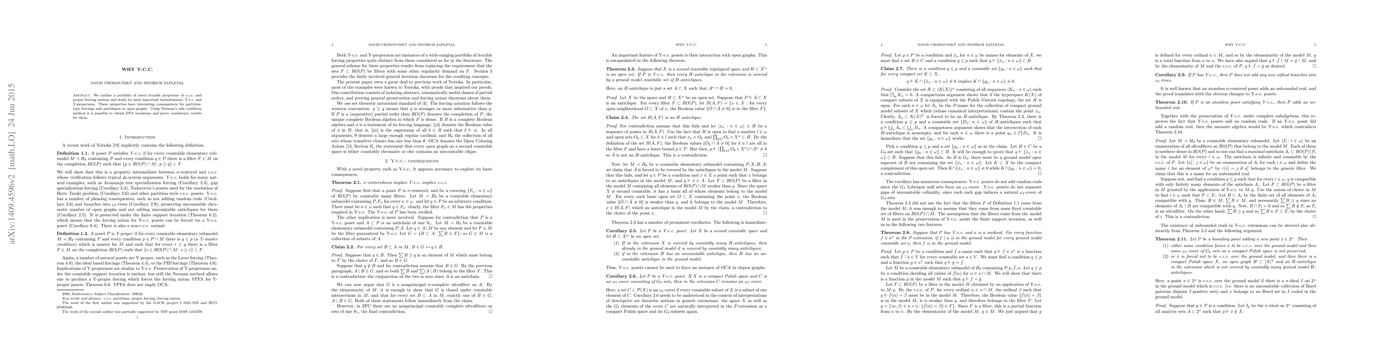 We outline a portfolio of novel iterable properties of c.c.c. and proper forcing notions and study its most important instantiations, Y-c.c. and Y-properness. These properties have interesting consequences for partition-type forcings and anticliques in open graphs. Using Neeman's side condition method it is possible to obtain PFA variations and prove consistency results for them.