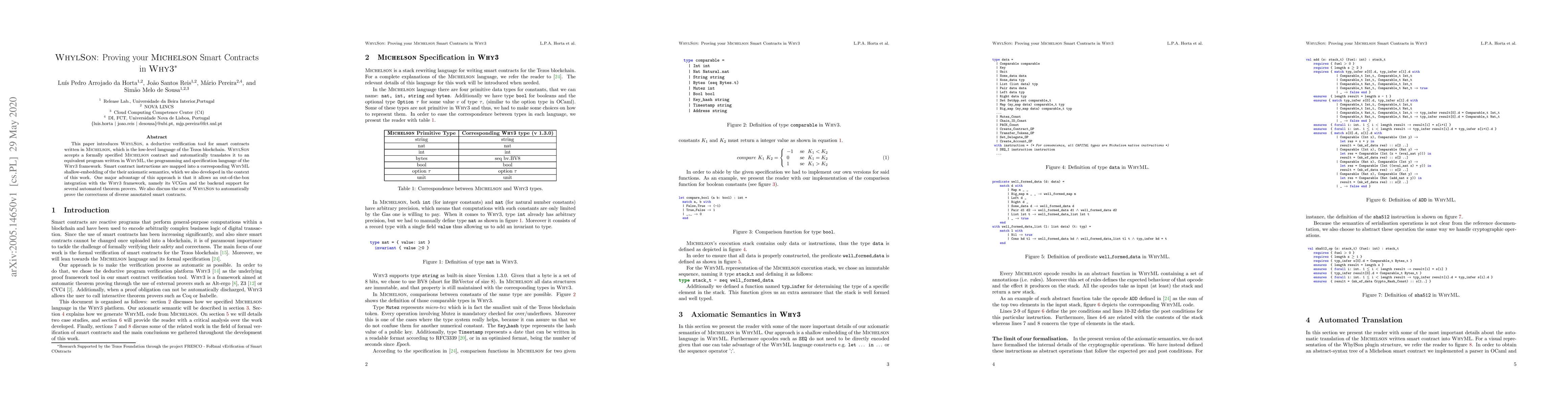 WhylSon is a tool for verifying Michelson smart contracts by translating them into WhyML for the Why3 framework, enabling automated theorem proving and integration with backend provers. It leverages the axiomatic semantics of Michelson to ensure correctness proofs for Tezos blockchain contracts.