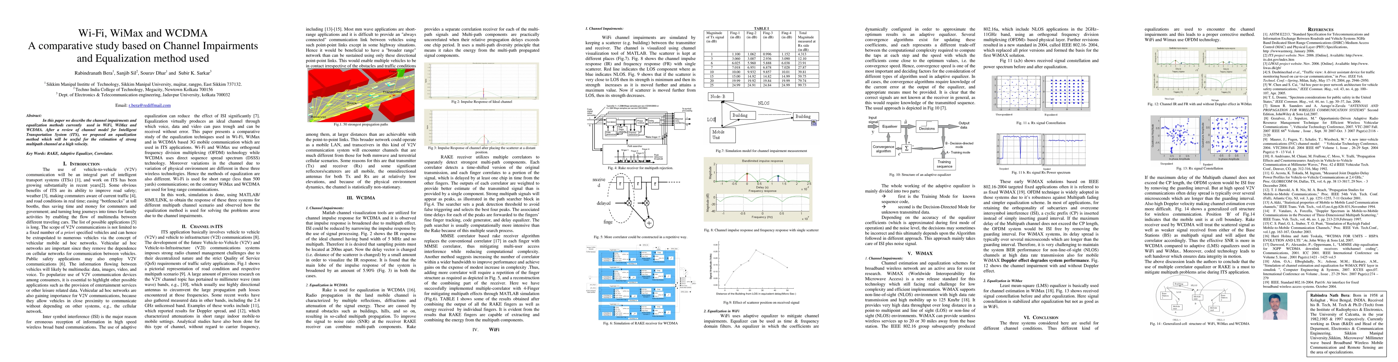 This paper compares channel impairments and equalization methods used in Wi-Fi, WiMax, and WCDMA technologies, proposing a new method for estimating strong multipath channels at high velocities.