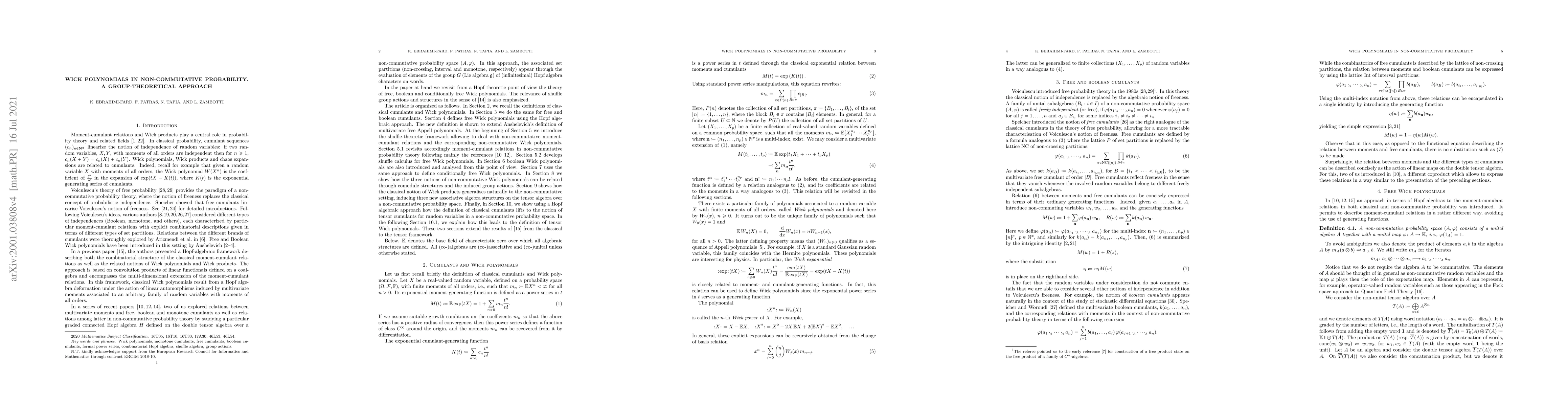 Summary: This paper explores Wick polynomials within non-commutative probability, defining free, boolean, and conditionally free versions and linking them via the group of characters over a specific Hopf algebra, extending previous Hopf algebraic methods for classical probability cumulants and Wick products.