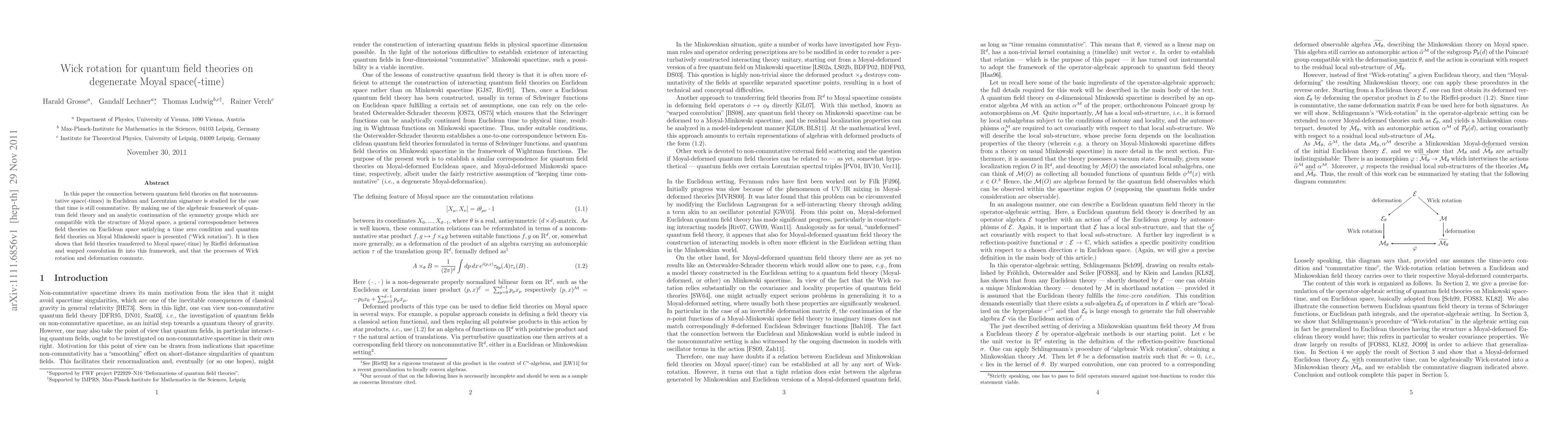 This paper establishes a Wick rotation for quantum field theories on noncommutative Moyal space-time, showing a correspondence between Euclidean and Lorentzian signatures. It demonstrates that field theories transformed via Rieffel deformation and warped convolution conform to this framework, and that Wick rotation and deformation are mutually compatible.