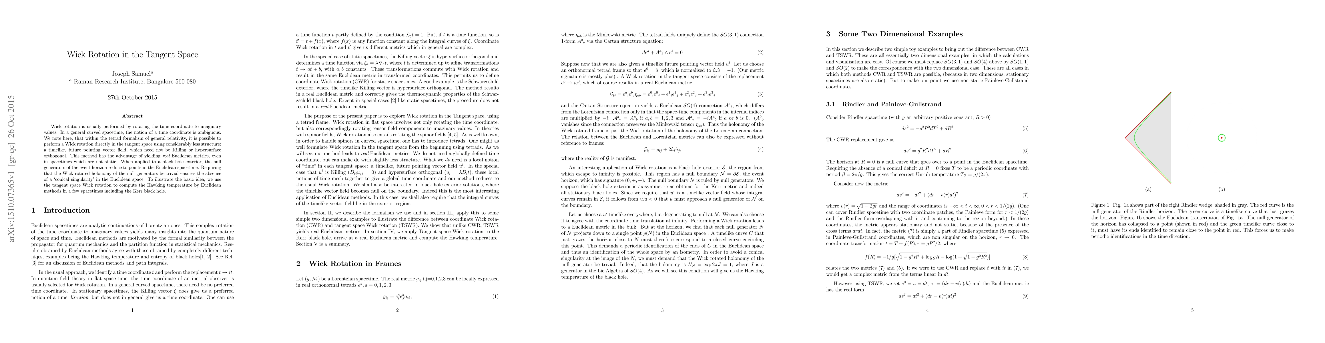 Wick rotation is usually performed by rotating the time coordinate to imaginary values. In a general curved spacetime, the notion of a time coordinate is ambiguous. We note here, that within the tetrad formalism of general relativity, it is possible to perform a Wick rotation directly in the tangent space using considerably less structure: a timelike, future pointing vector field, which need not be Killing or hypersurface orthogonal. This method has the advantage of yielding real Euclidean metrics, even in spacetimes which are not static. When applied to a black hole exterior, the null generators of the event horizon reduce to points in the Euclidean spacetime. Requiring that the Wick rotated holonomy of the null generators be trivial ensures the absence of a `conical singularity' in the Euclidean space. To illustrate the basic idea, we use the tangent space Wick rotation to compute the Hawking temperature by Euclidean methods in a few spacetimes including the Kerr black hole.