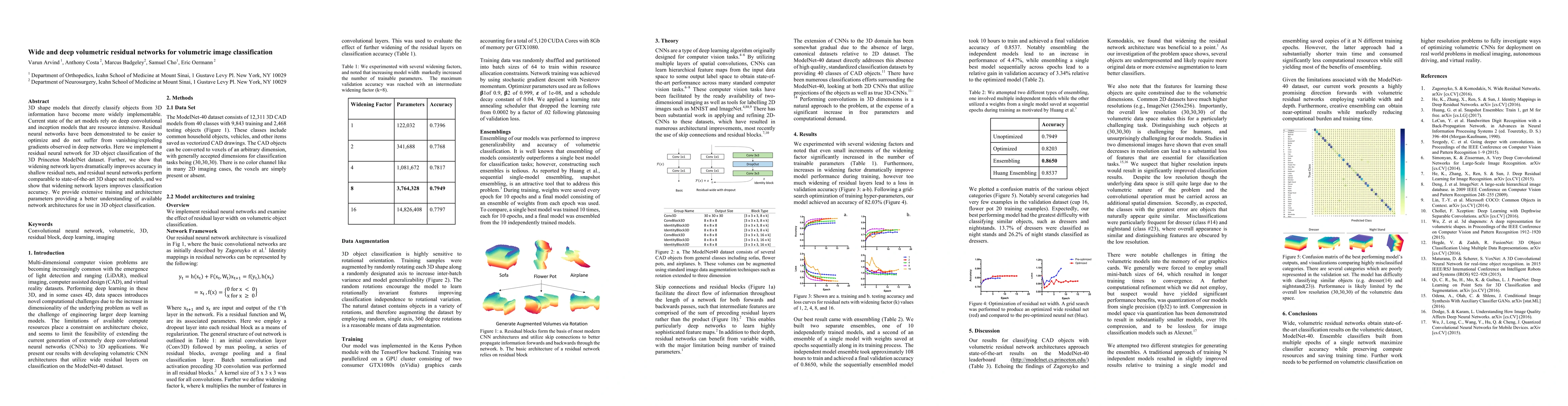 This paper proposes a wide and deep volumetric residual network for 3D object classification, demonstrating that widening network layers significantly enhances accuracy. The approach achieves performance comparable to state-of-the-art models on the ModelNet dataset, offering insights into effective network architectures for 3D classification.
