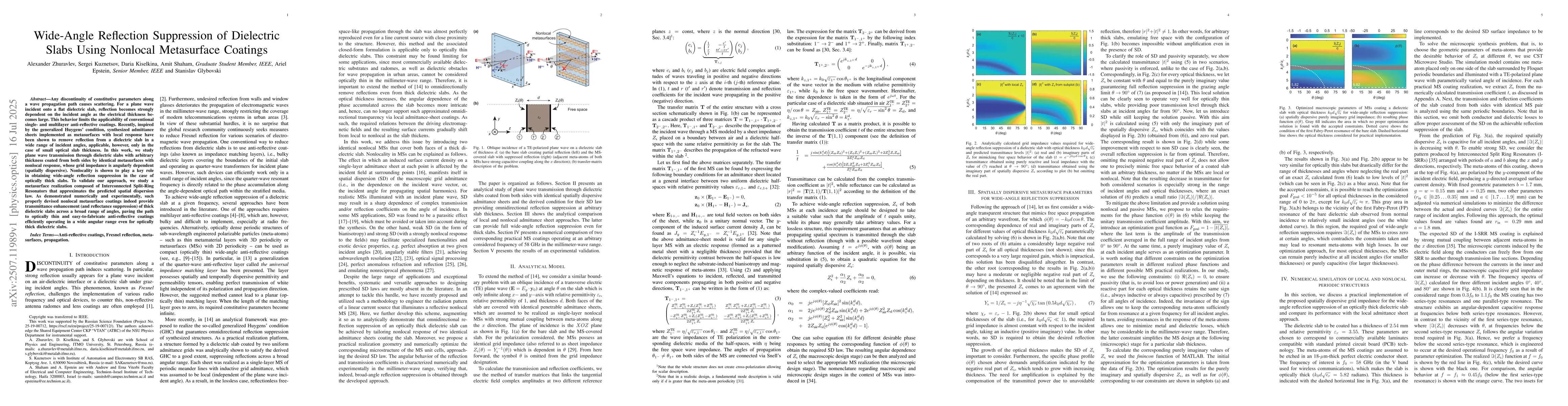 Any discontinuity of constitutive parameters along a wave propagation path causes scattering. For a plane wave incident onto a flat dielectric slab, reflection becomes strongly dependent on the incident angle as the electrical thickness becomes large. This behavior limits the applicability of conventional single- and multilayer anti-reflective coatings. Recently, inspired by the generalized Huygens' condition, synthesized admittance sheets implemented as metasurfaces with local response have been shown to remove reflection from a dielectric slab in a wide range of incident angles, applicable, however, only in the case of small optical slab thickness. In this work, we study plane wave transmission through dielectric slabs with arbitrary thickness coated from both sides by identical metasurfaces with nonlocal response, whose grid impedance is angularly dependent (spatially dispersive). Nonlocality is shown to play a key role in obtaining wide-angle reflection suppression in the case of optically thick slabs. To validate our approach, we study a metasurface realization composed of Interconnected Split-Ring Resonators that approximates the predicted spatial dispersion law. As demonstrated numerically and experimentally, such properly devised nonlocal metasurface coatings indeed provide transmittance enhancement (and reflectance suppression) of thick dielectric slabs across a broad range of angles, paving the path to optically thin and easy-to-fabricate anti-reflective coatings efficiently operating in a wide angular range even for optically thick dielectric slabs.