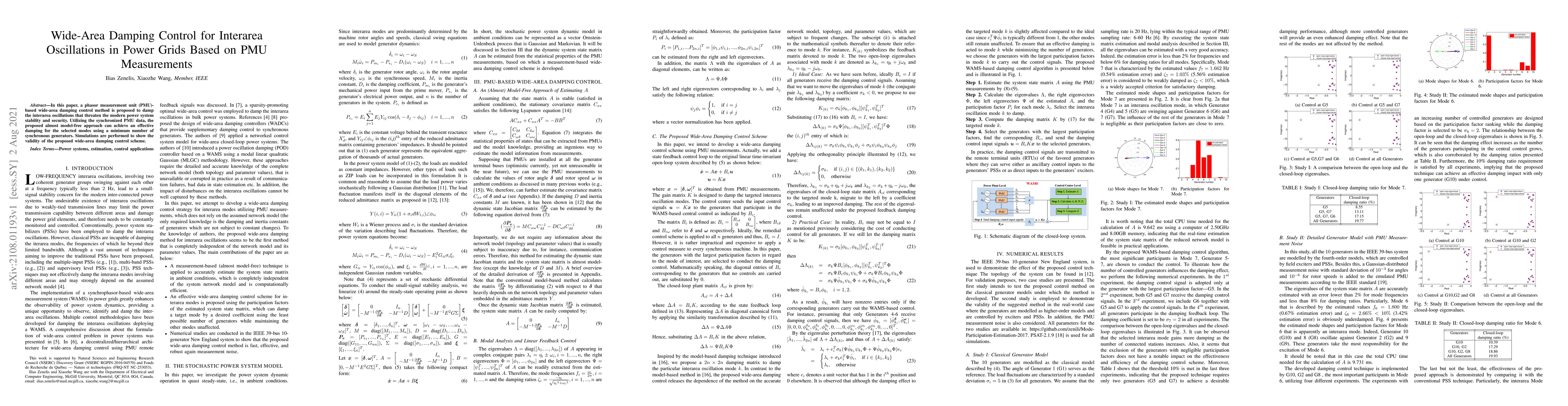 This paper proposes a PMU-based wide-area damping control method to mitigate interarea oscillations in power grids, utilizing synchronized PMU data for an almost model-free approach that effectively damps selected oscillation modes with minimal generator intervention. Simulation results validate the effectiveness of the proposed control scheme.