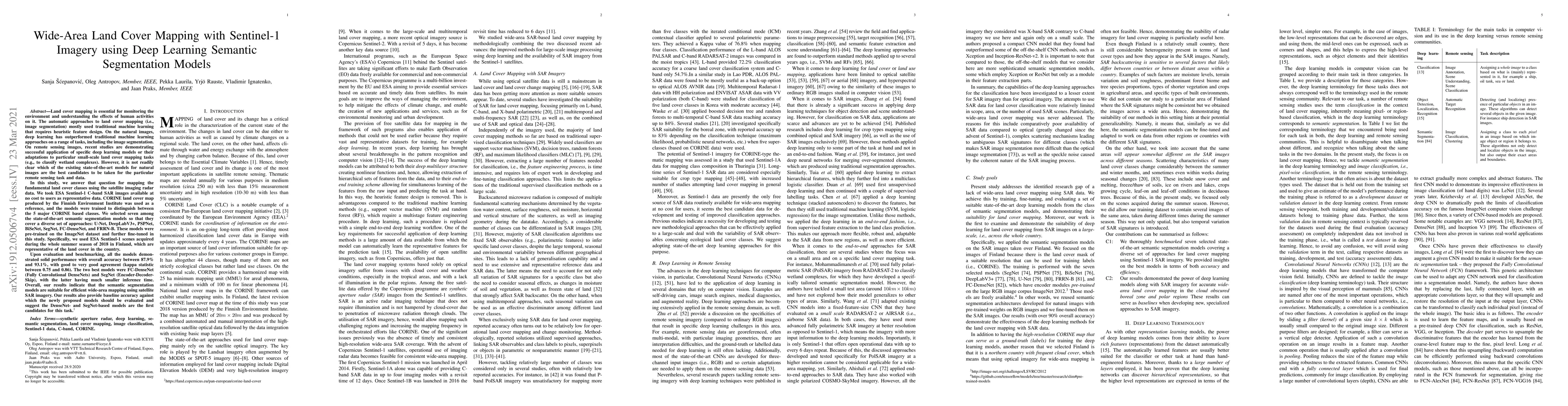 This study evaluates seven state-of-the-art deep learning semantic segmentation models for wide-area land cover mapping using Sentinel-1 SAR imagery, achieving high accuracy (87.9%-93.1%) and good agreement (kappa 0.75-0.86). FC-DenseNet and SegNet emerged as the top performers, demonstrating their suitability for efficient remote sensing applications.