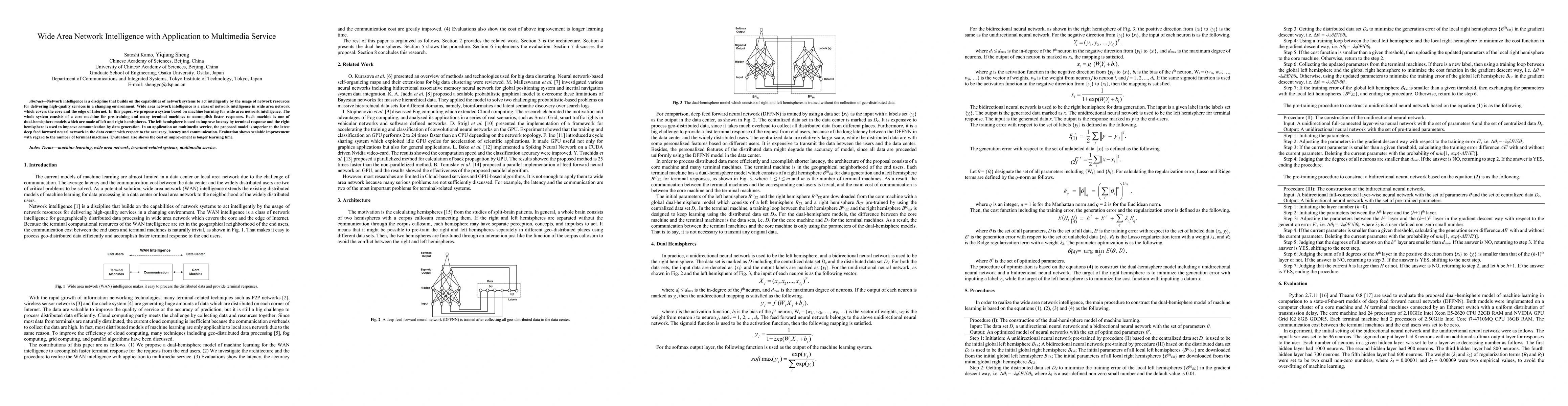 This paper proposes a machine learning-based system for wide area network intelligence, utilizing dual-hemisphere models for improved latency and communication. The system demonstrates superior performance in multimedia services compared to traditional neural networks, showing scalable improvements with more terminal machines.