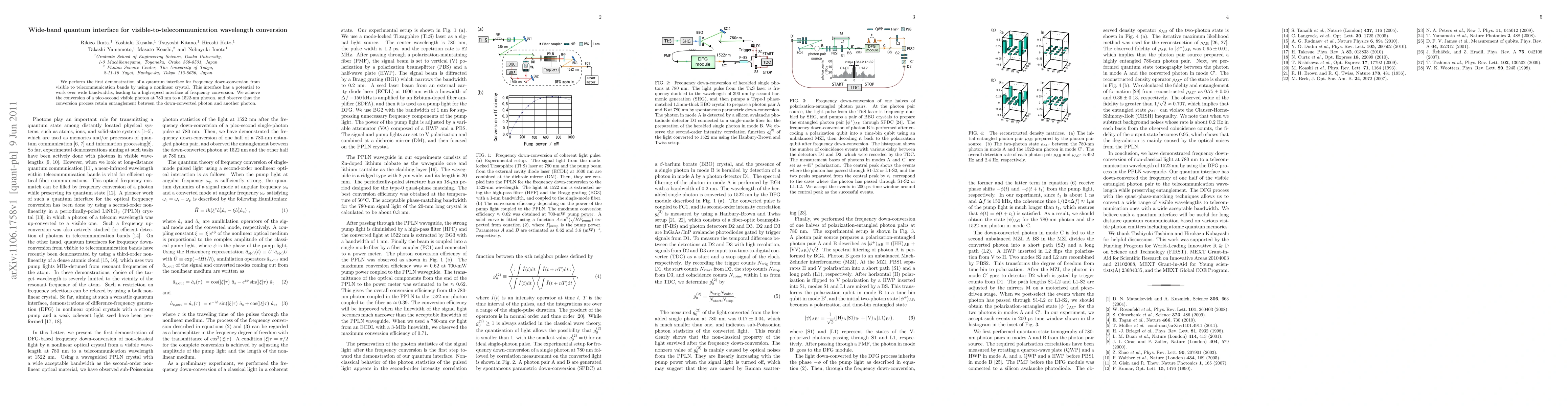 This research demonstrates a quantum interface using a nonlinear crystal for converting visible photons to telecommunication band photons, achieving a high-speed frequency down-conversion over wide bandwidths while maintaining entanglement. The specific conversion of a 780 nm photon to a 1522 nm photon was successfully realized.