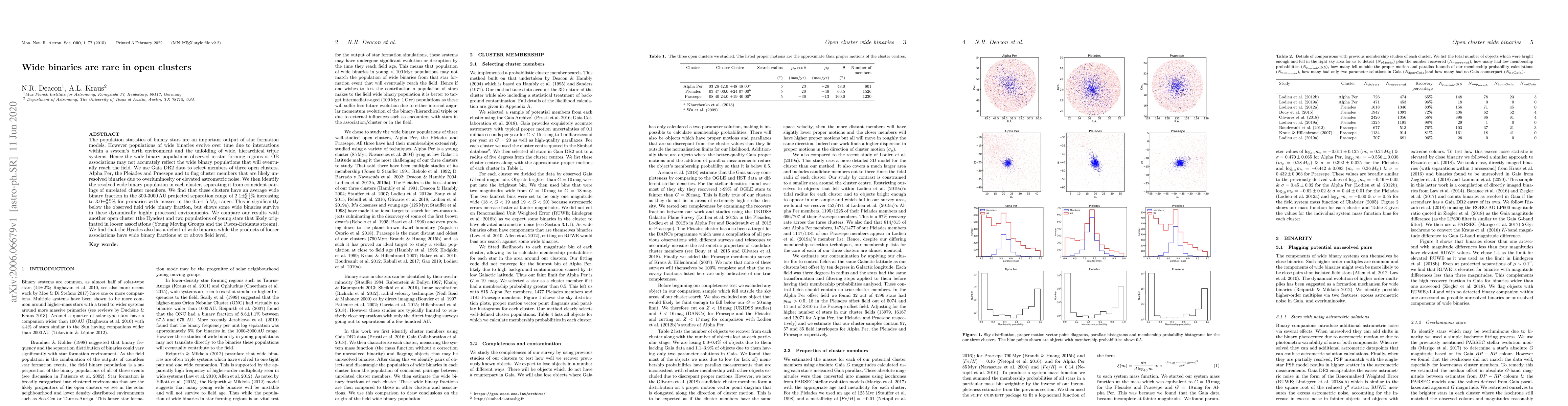 The population statistics of binary stars are an important output of star formation models. However populations of wide binaries evolve over time due to interactions within a system's birth environment and the unfolding of wide, hierarchical triple systems. Hence the wide binary populations observed in star forming regions or OB associations may not accurately reflect the wide binary populations that will eventually reach the field. We use Gaia DR2 data to select members of three open clusters, Alpha~Per, the Pleiades and Praesepe and to flag cluster members that are likely unresolved binaries due to overluminosity or elevated astrometric noise. We then identify the resolved wide binary population in each cluster, separating it from coincident pairings of unrelated cluster members. We find that these clusters have an average wide binary fraction in the 300-3000\,AU projected separation range of 2.1$\pm^{0.4}_{0.2}$\% increasing to 3.0$\pm^{0.8}_{0.7}$\% for primaries with masses in the 0.5-1.5\,$M_{\odot}$ range. This is significantly below the observed field wide binary fraction, but shows some wide binaries survive in these dynamically highly processed environments. We compare our results with another open cluster (the Hyades) and two populations of young stars that likely originated in looser associations (Young Moving Groups and the Pisces-Eridanus stream). We find that the Hyades also has a deficit of wide binaries while the products of looser associations have wide binary fractions at or above field level.