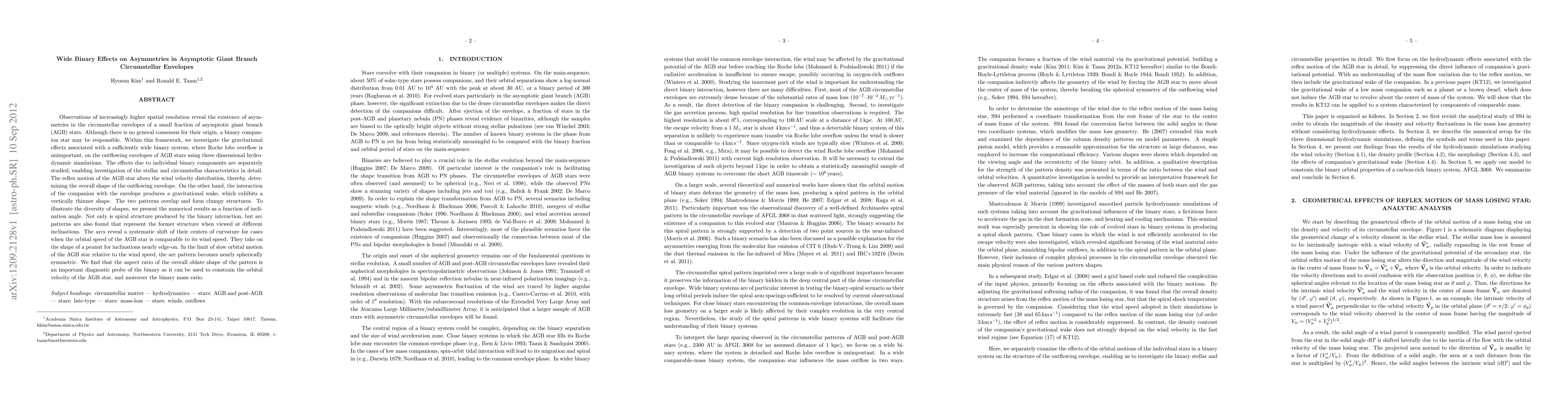 Researchers found that wide binary systems can cause asymmetries in the circumstellar envelopes of asymptotic giant branch stars, creating spiral and arc patterns, and providing a new diagnostic tool to constrain orbital velocities and binary mass ratios.