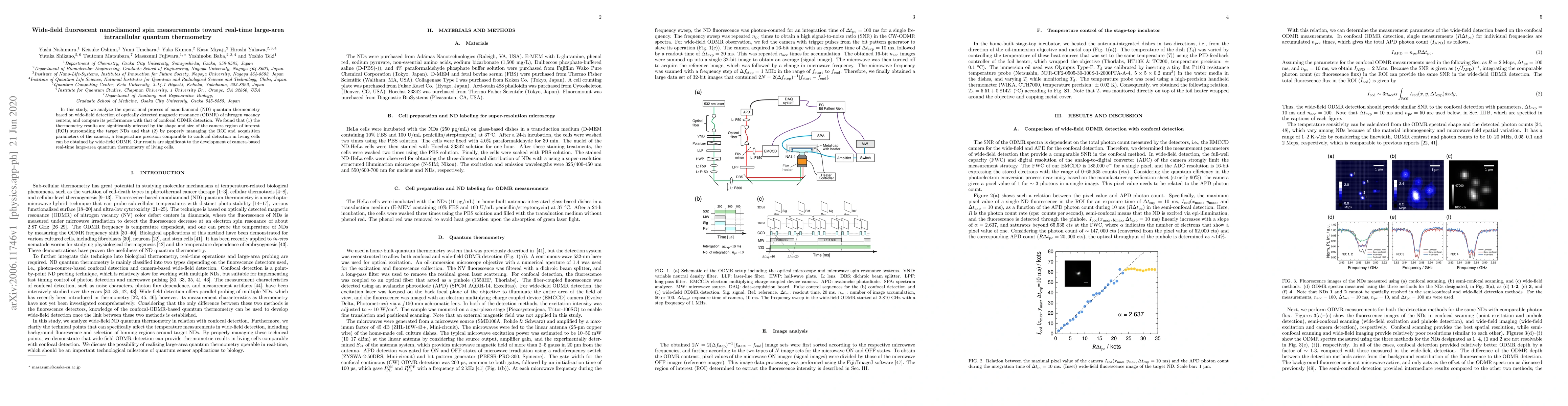 This study investigates nanodiamond quantum thermometry using wide-field optically detected magnetic resonance, finding that temperature precision comparable to confocal detection is achievable by optimizing camera region of interest and acquisition parameters. The results advance real-time large-area thermometry in living cells.