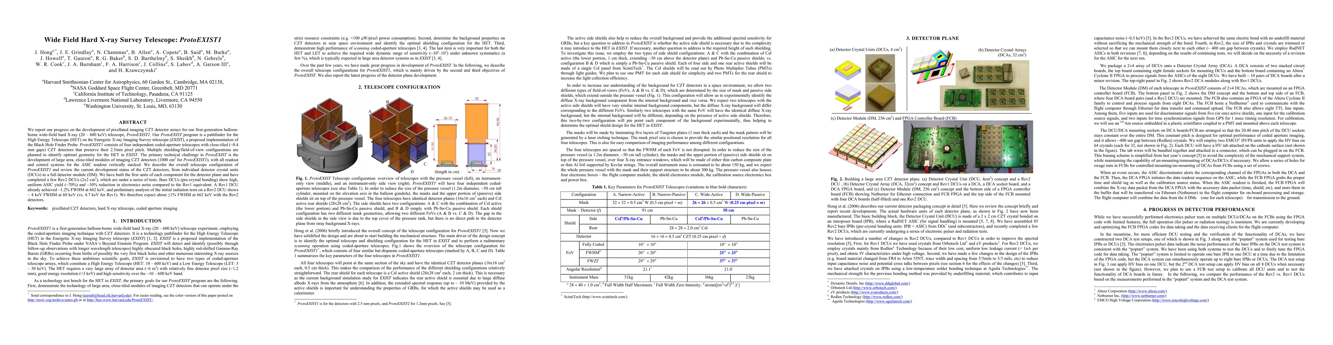 The paper reports on the development of pixellated imaging CZT detector arrays for ProtoEXIST1, a first-generation balloon-borne wide-field hard X-ray telescope. The project aims to identify optimal configurations for the High Energy Telescope (HET) on the EXIST mission. Initial tests on the new Rev2 detector units show significant improvements in performance and noise reduction compared to the previous Rev1 version.