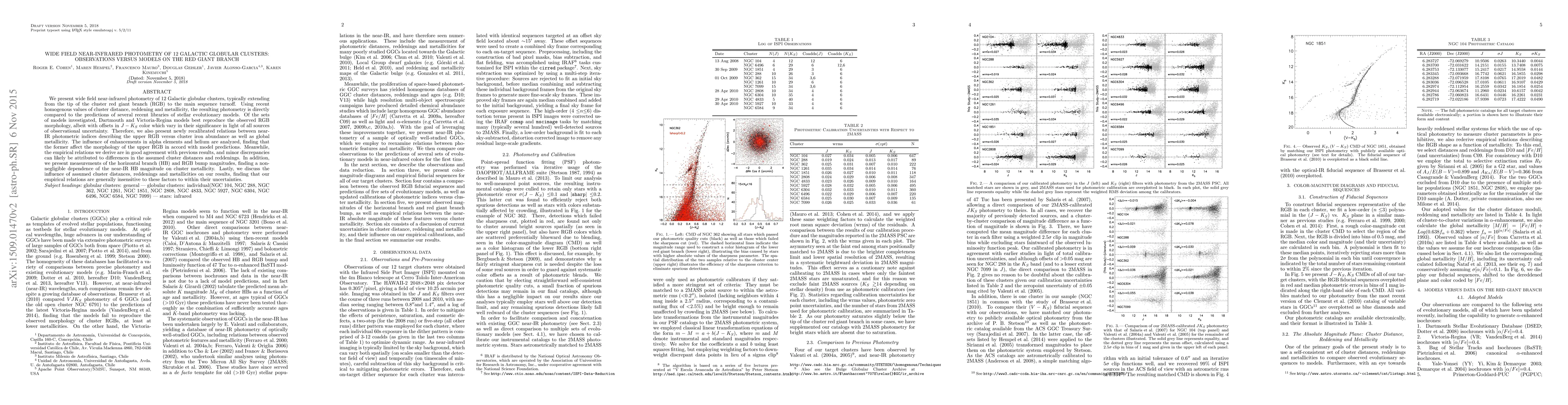 This paper presents wide field near-infrared photometry of 12 Galactic globular clusters and compares it to stellar evolutionary models, finding that Dartmouth and Victoria-Regina models best match the observed red giant branch morphology. The study also recalibrates near-IR photometric indices and discusses the influence of alpha elements and helium on the upper RGB.