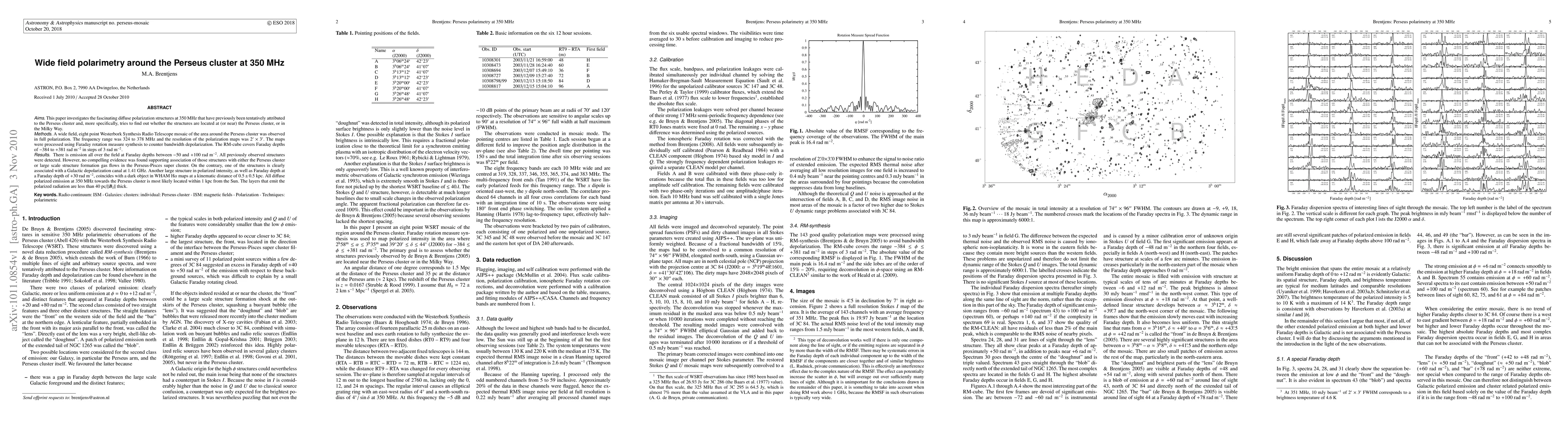 A wide-field polarimetry study of 350 MHz emission around the Perseus cluster found that diffuse polarization structures are likely located within 1 kpc from the Sun, with no evidence for association with the cluster or large-scale structure formation gas flows.