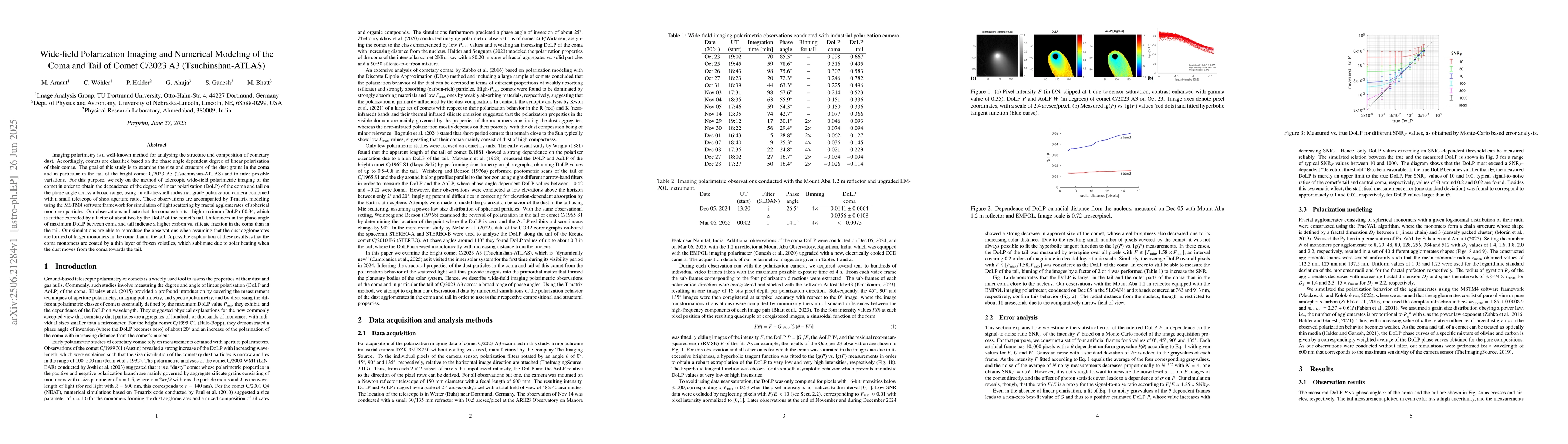 This research advances understanding of cometary dust composition and structure through polarimetric imaging, providing insights into dust grain size, composition, and evolutionary processes, which are crucial for comet characterization and solar system studies.