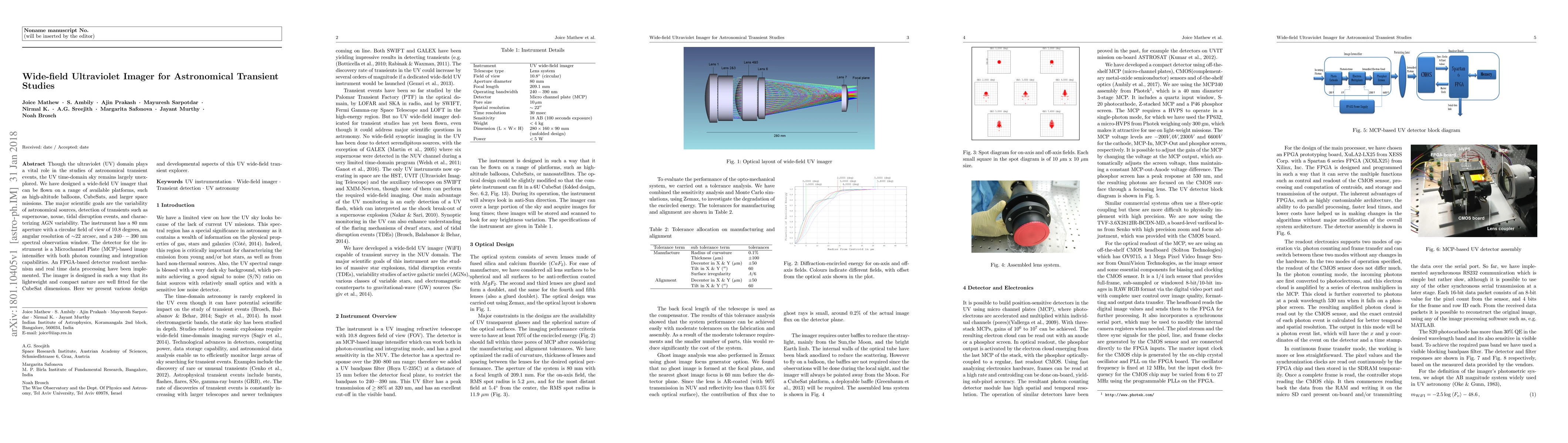 This paper details the design of a wide-field ultraviolet imager for studying astronomical transients, including supernovae and AGN variability, with a focus on its application on CubeSats. The instrument features an 80 mm aperture, a 10.8-degree field of view, and an FPGA-based real-time data processing system.