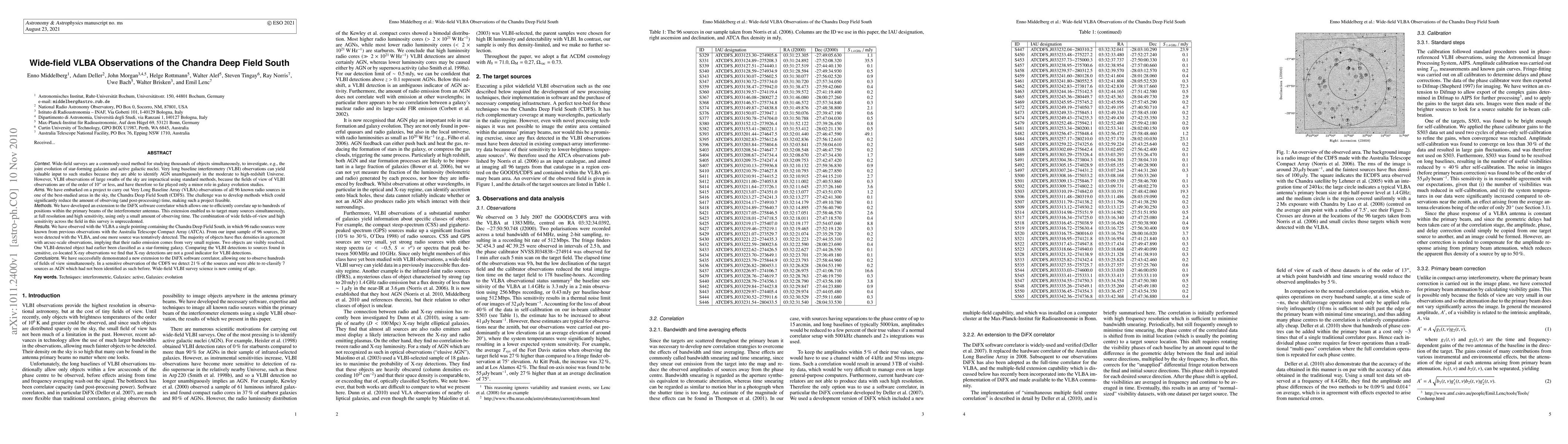 This paper details a VLBA survey of the Chandra Deep Field South, identifying 20 out of 96 known radio sources using an extended DiFX correlator for efficient wide-field observations. The results show that X-ray detections are not reliable indicators for VLBI detections, highlighting the survey's unprecedented wide-field sensitivity and resolution.