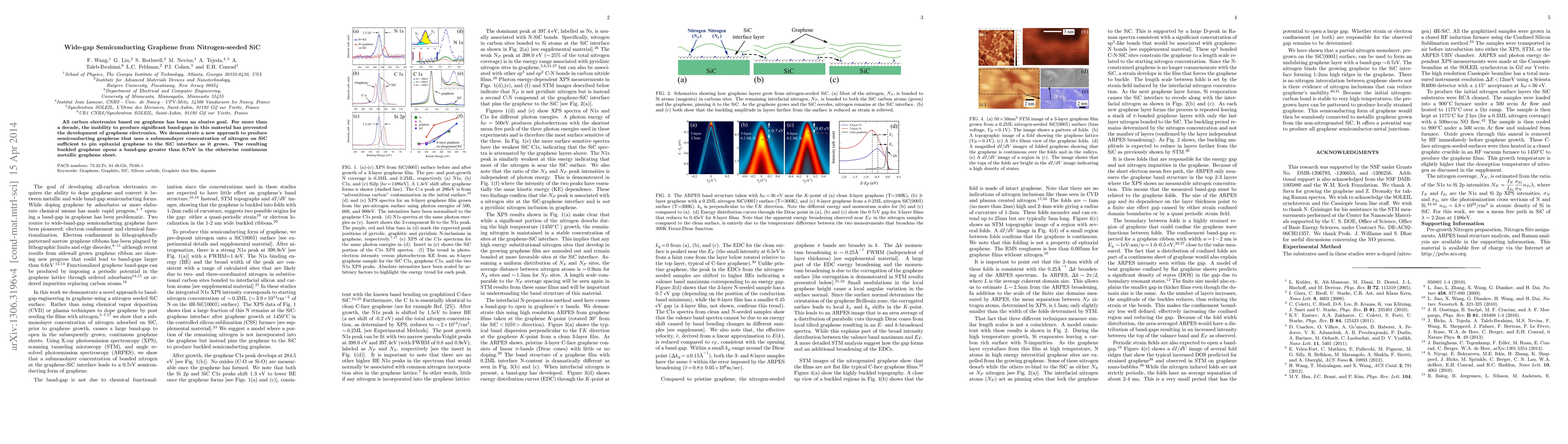 This paper presents a novel method to create wide-gap semiconducting graphene by using nitrogen-seeded silicon carbide (SiC) substrates. The approach involves pinning epitaxial graphene to the SiC interface with a submonolayer concentration of nitrogen, causing the graphene to buckle and open a band-gap greater than 0.7eV, overcoming the challenge of producing significant band-gaps in graphene.