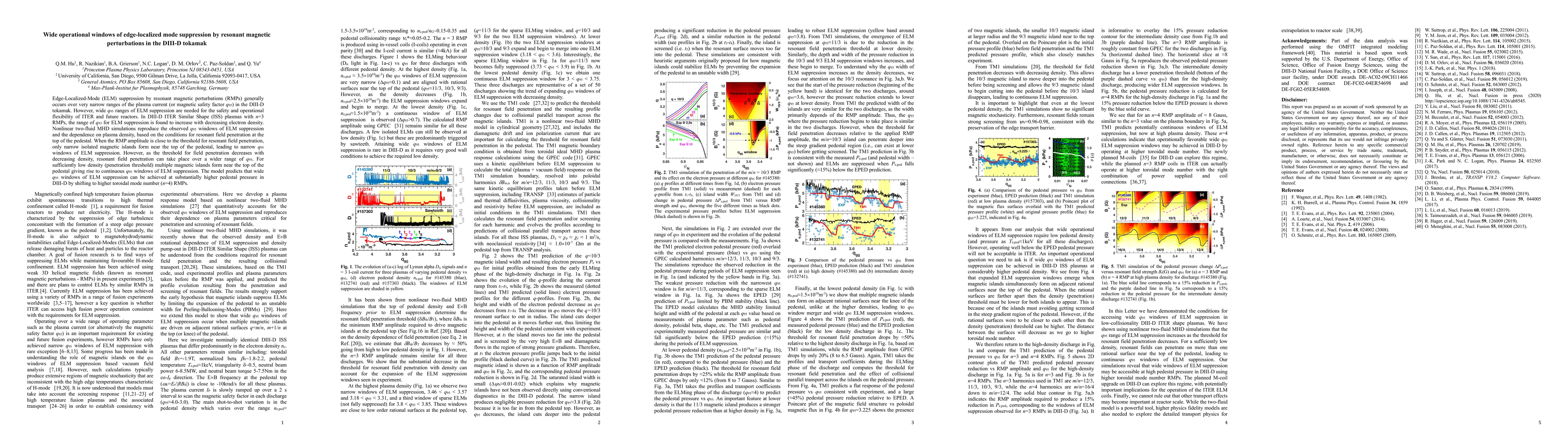 This paper investigates the suppression of Edge-Localized Modes (ELMs) in the DIII-D tokamak using resonant magnetic perturbations (RMPs), finding that wider operational windows for ELM suppression occur at lower electron densities. The study suggests that shifting to higher toroidal mode number RMPs could further enhance these wide operational windows.