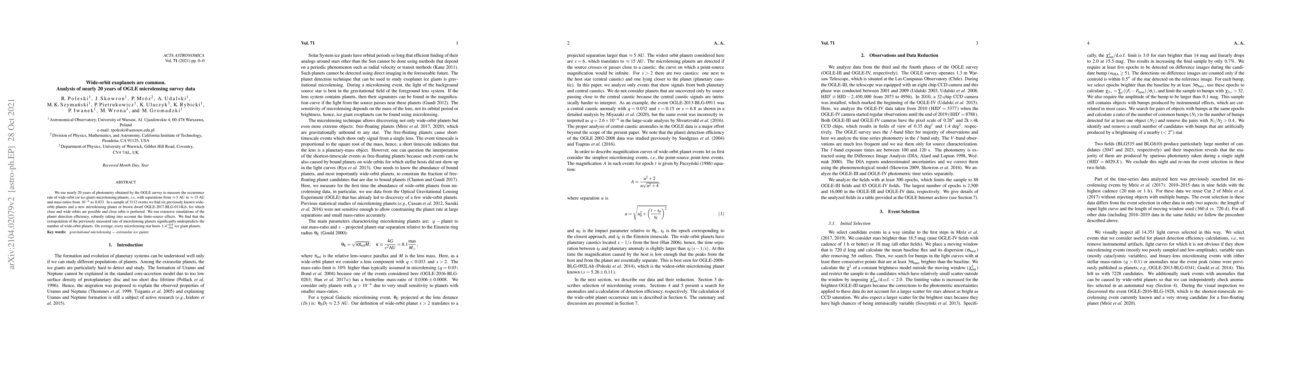 We use nearly 20 years of photometry obtained by the OGLE survey to measure the occurrence rate of wide-orbit (or ice giant) microlensing planets, i.e., with separations from ~5 AU to ~15 AU and mass-ratios from $10^{-4}$ to 0.033. In a sample of 3112 events we find six previously known wide-orbit planets and a new microlensing planet or brown dwarf OGLE-2017-BLG-0114Lb, for which close and wide orbits are possible and close orbit is preferred. We run extensive simulations of the planet detection efficiency, robustly taking into account the finite-source effects. We find that the extrapolation of the previously measured rate of microlensing planets significantly underpredicts the number of wide-orbit planets. On average, every microlensing star hosts $1.4^{+0.9}_{-0.6}$ ice giant planets.