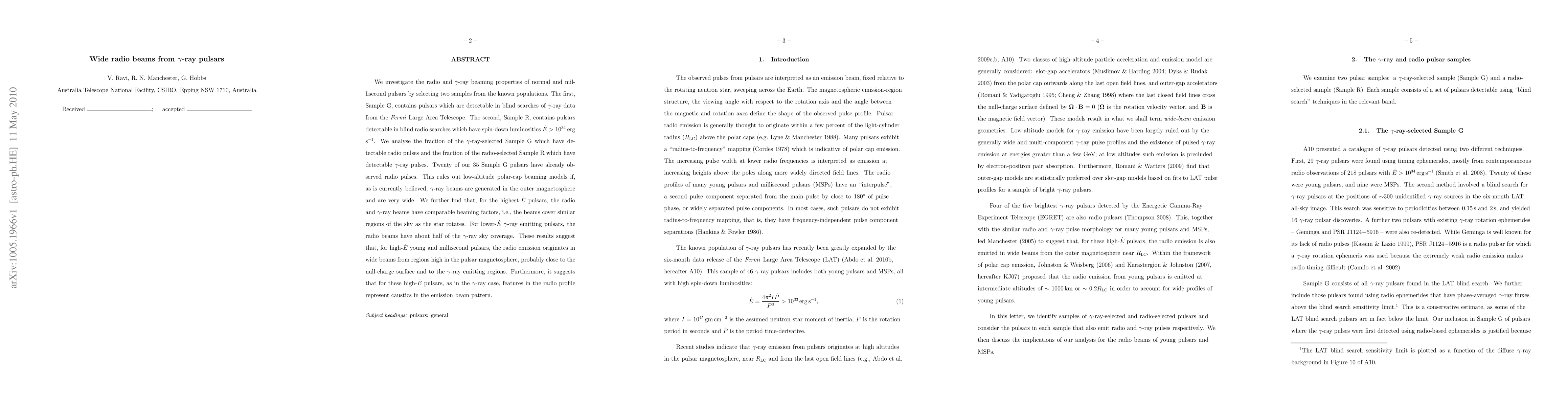 This research investigates the radio and gamma-ray beaming properties of pulsars, finding that high-Edot pulsars have comparable radio and gamma-ray beam coverage, suggesting wide radio beams originating from high in the magnetosphere. For lower-Edot pulsars, radio beams cover about half the gamma-ray sky, indicating different emission regions.