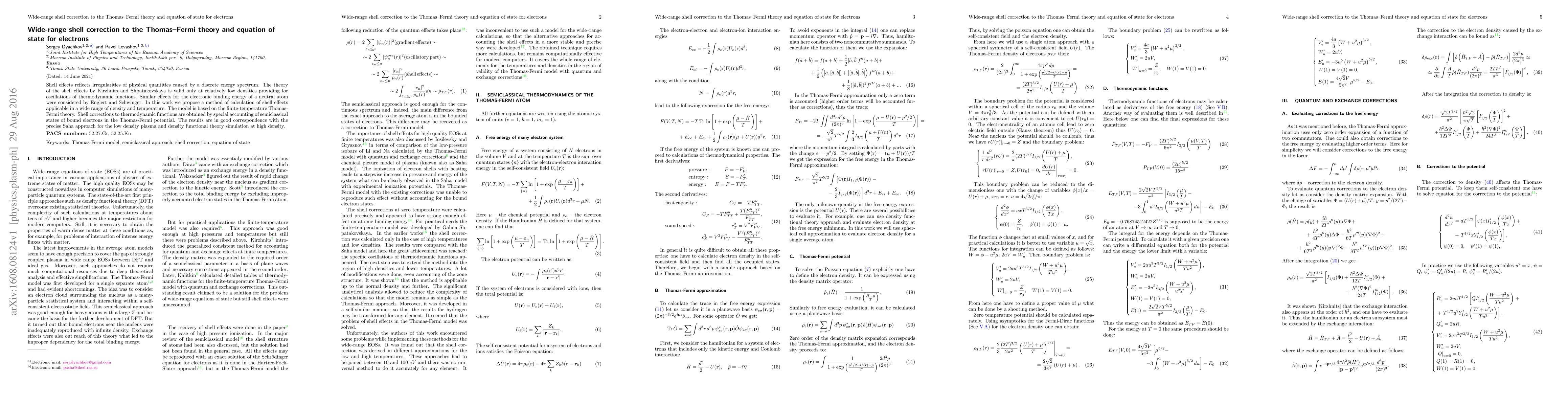 Shell effects reflects irregularities of physical quantities caused by a discrete energy spectrum. The theory of the shell effects by Kirzhnits and Shpatakovskaya is valid only at relatively low densities providing for oscillations of thermodynamic functions. Similar effects for the electronic binding energy of a neutral atom were considered by Englert and Schwinger. In this work we propose a method of calculation of shell effects applicable in a wide range of density and temperature. The model is based on the finite-temperature Thomas-Fermi theory. Shell corrections to thermodynamic functions are obtained by special accounting of semiclassical states of bound electrons in the Thomas-Fermi potential. The results are in good correspondence with the precise Saha approach for the low density plasma and density functional theory simulation at high density.