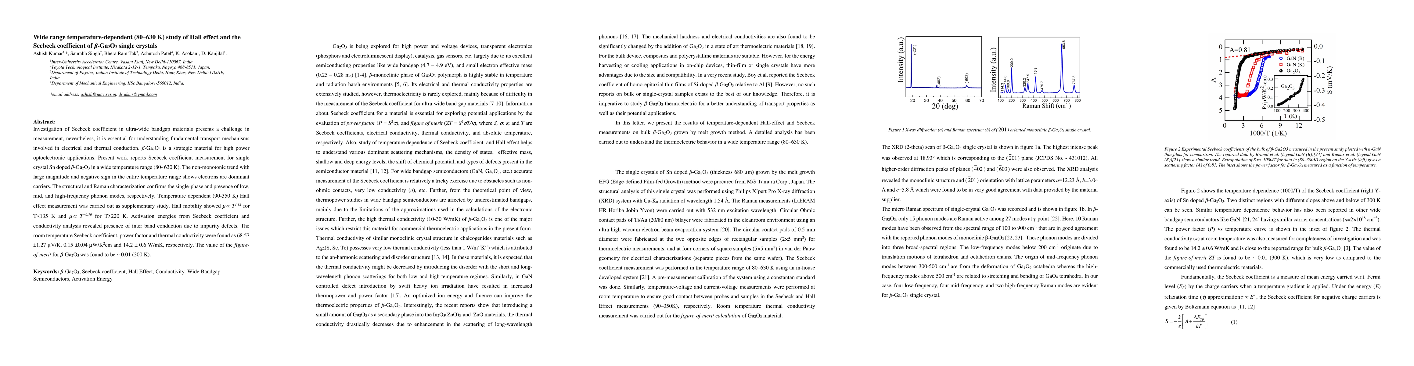 Researchers studied the Seebeck coefficient and Hall effect in single-crystal Sn-doped η-Ga2O3 at temperatures ranging from 80-630 K, finding that electrons dominate carriers and that the material shows potential for high-power optoelectronic applications.