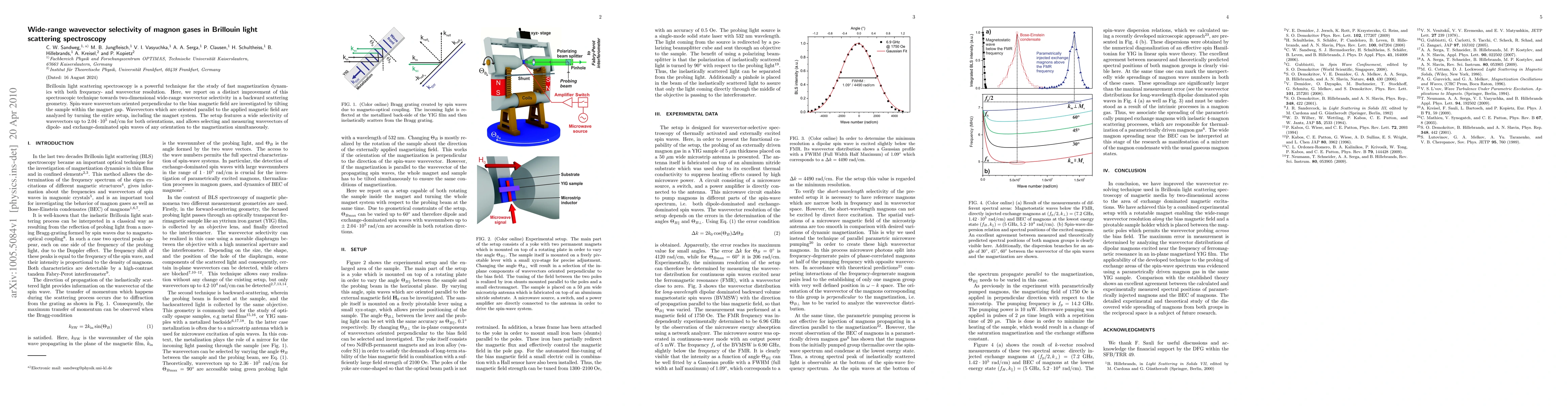 This paper reports an enhancement of Brillouin light scattering spectroscopy for studying magnetization dynamics, achieving two-dimensional wide-range wavevector selectivity up to 2.04×10^5 rad/cm. The technique allows simultaneous analysis of spin waves oriented perpendicular and parallel to the magnetic field by tilting the sample and the entire setup.