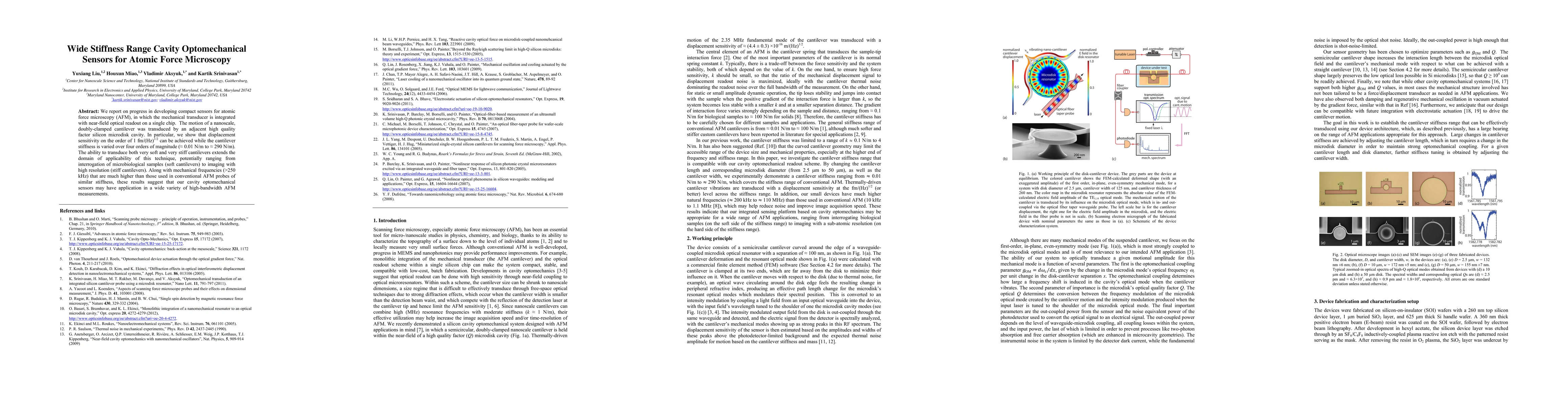 This paper presents a novel cavity optomechanical sensor integrated with atomic force microscopy for nanoscale measurements, achieving high displacement sensitivity across a wide range of cantilever stiffnesses. The sensor's high-frequency mechanical capabilities and broad stiffness range offer potential for diverse high-bandwidth AFM applications.