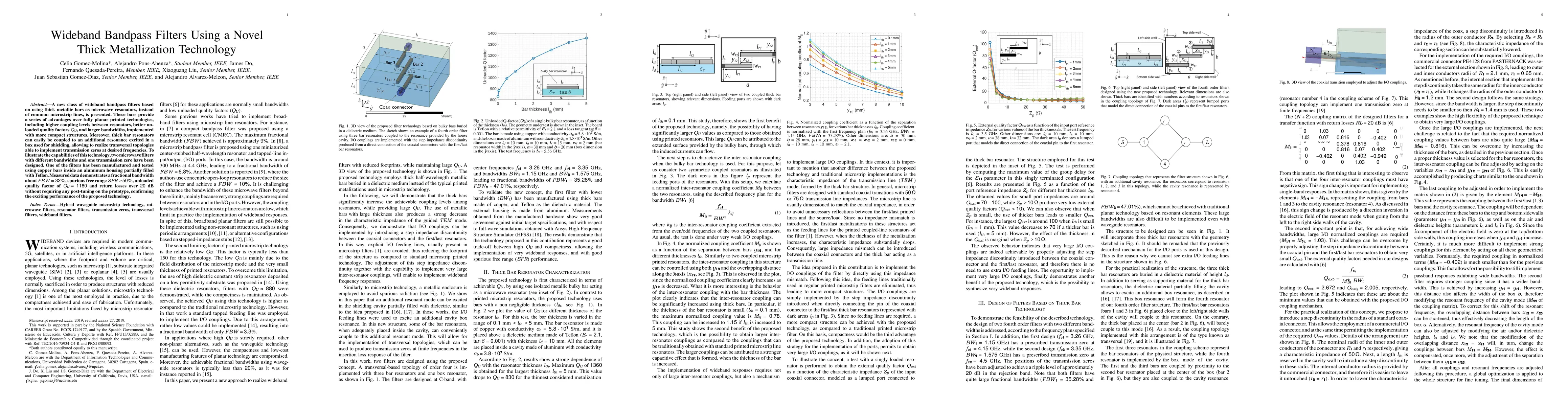 A novel technology for the implementation of wideband filters has been presented and experimentally validated.