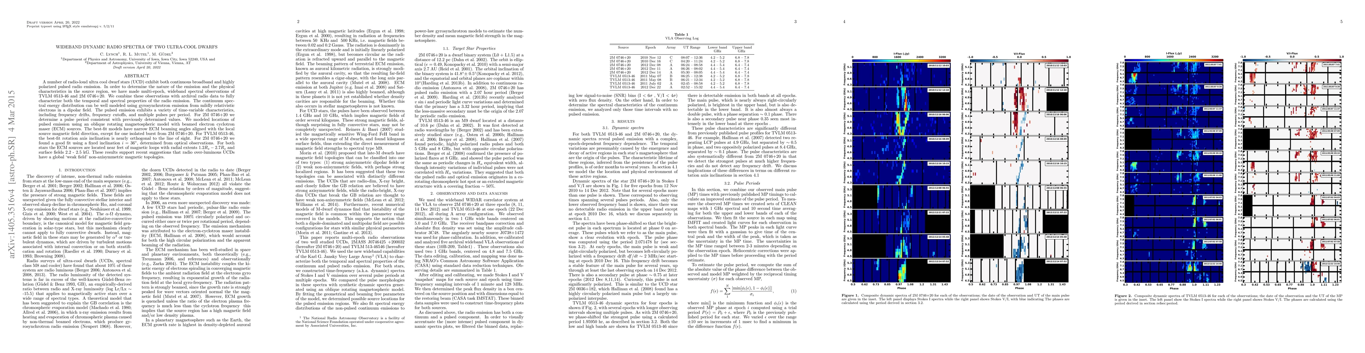 This study characterizes the wideband dynamic radio spectra of two ultra-cool dwarf stars, TVLM 0513-46 and 2M 0746+20, revealing gyrosynchrotron emission and complex pulsed radio behavior. The findings suggest non-axisymmetric magnetic field topologies in these stars.