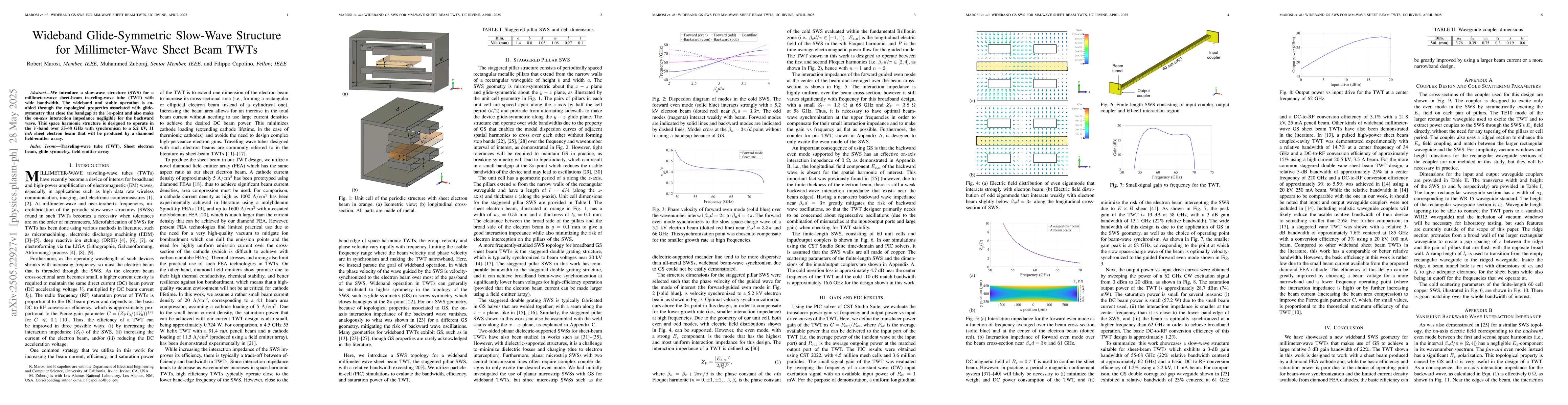The research introduces a slow-wave structure (SWS) for a millimeter-wave sheet-beam traveling-wave tube (TWT), designed using glide-symmetry principles to achieve wide bandwidth and stable operation.