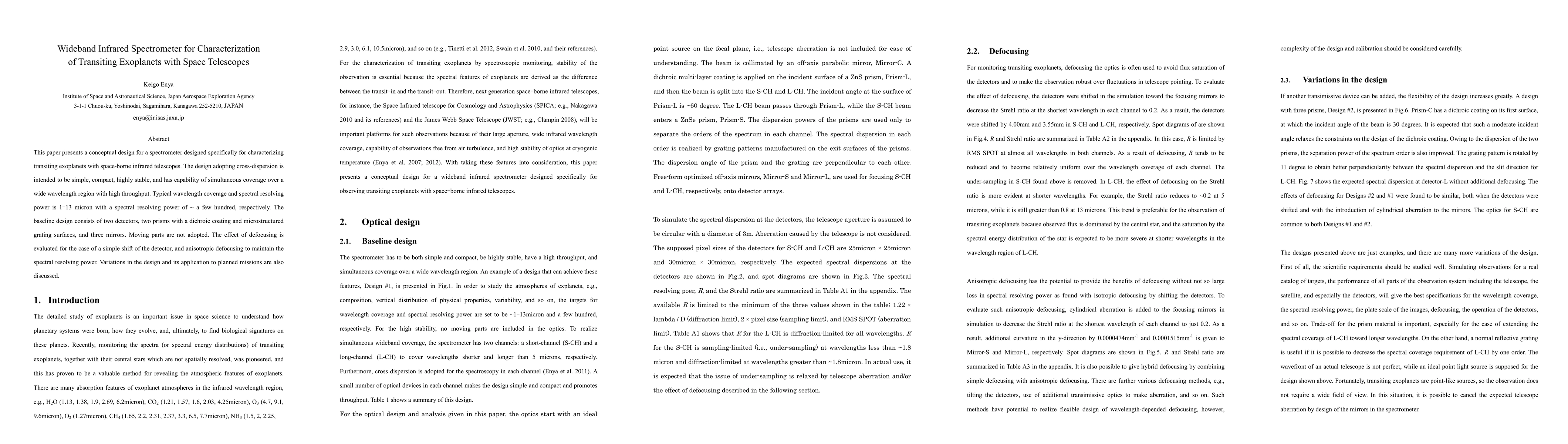 This paper proposes a compact, cross-dispersion infrared spectrometer for characterizing transiting exoplanets with space telescopes, featuring wide wavelength coverage and high spectral resolving power, with a focus on design simplicity and stability. The design includes two detectors and avoids moving parts to enhance stability.
