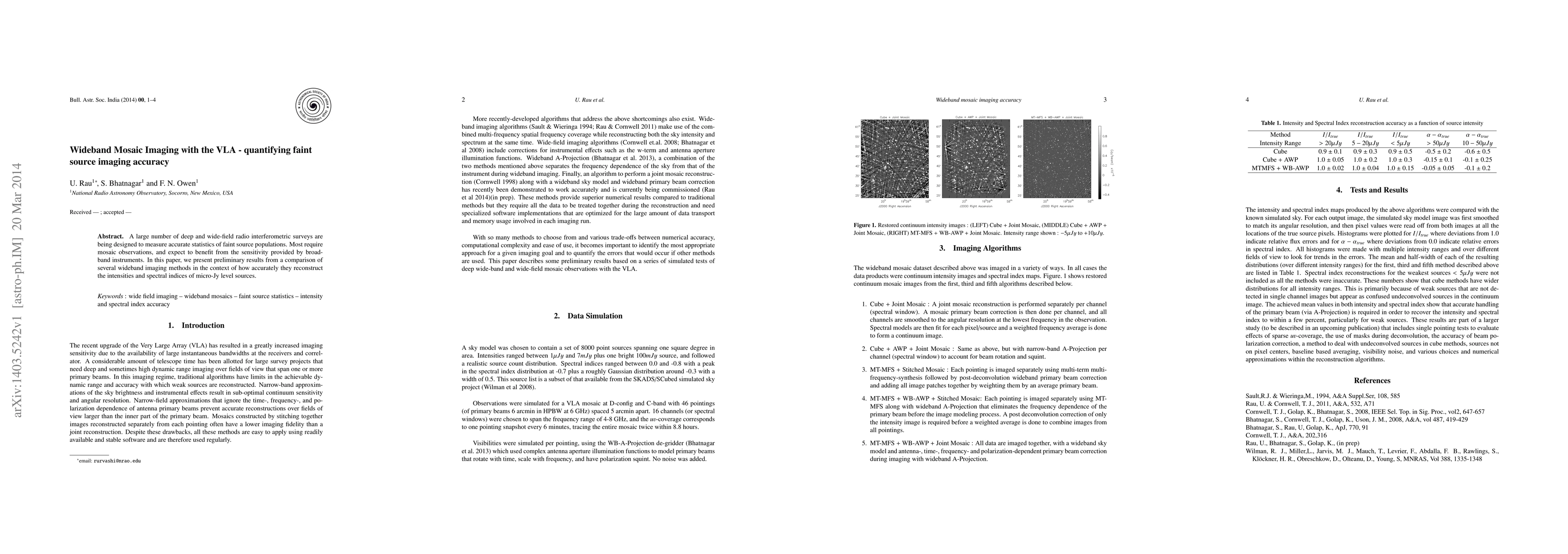 A large number of deep and wide-field radio interferometric surveys are being designed to measure accurate statistics of faint source populations. Most require mosaic observations, and expect to benefit from the sensitivity provided by broad-band instruments. In this paper, we present preliminary results from a comparison of several wideband imaging methods in the context of how accurately they reconstruct the intensities and spectral indices of micro-Jy level sources.