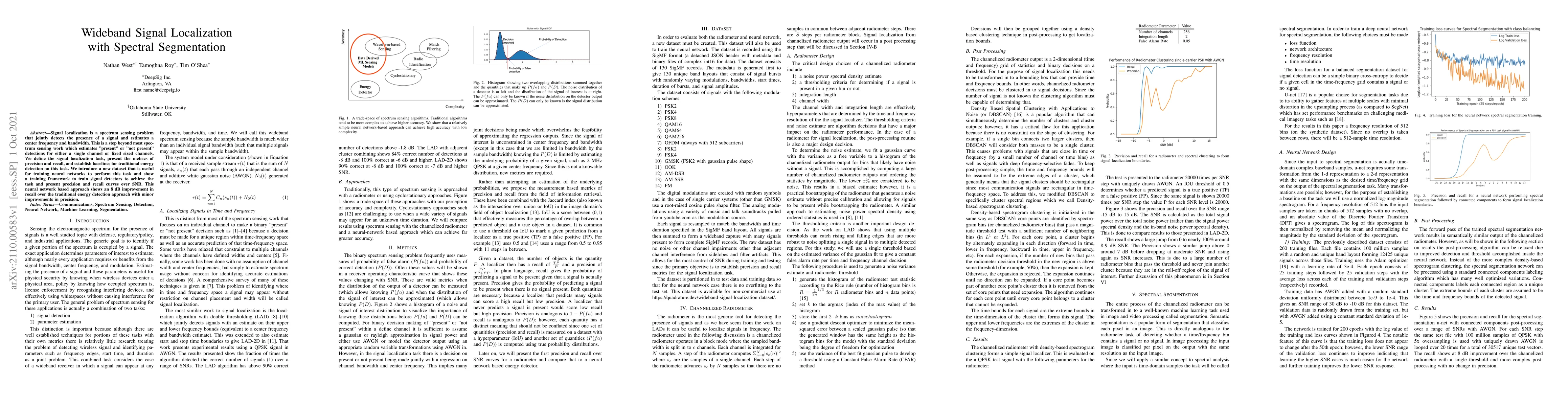 This research introduces a new approach for signal localization, a spectrum sensing problem, using neural networks. It presents precision and recall metrics, establishes energy detection baselines, and unveils a dataset for neural network training. The neural network method surpasses traditional energy detection, demonstrating an 8 dB improvement in recall with minor precision gains.