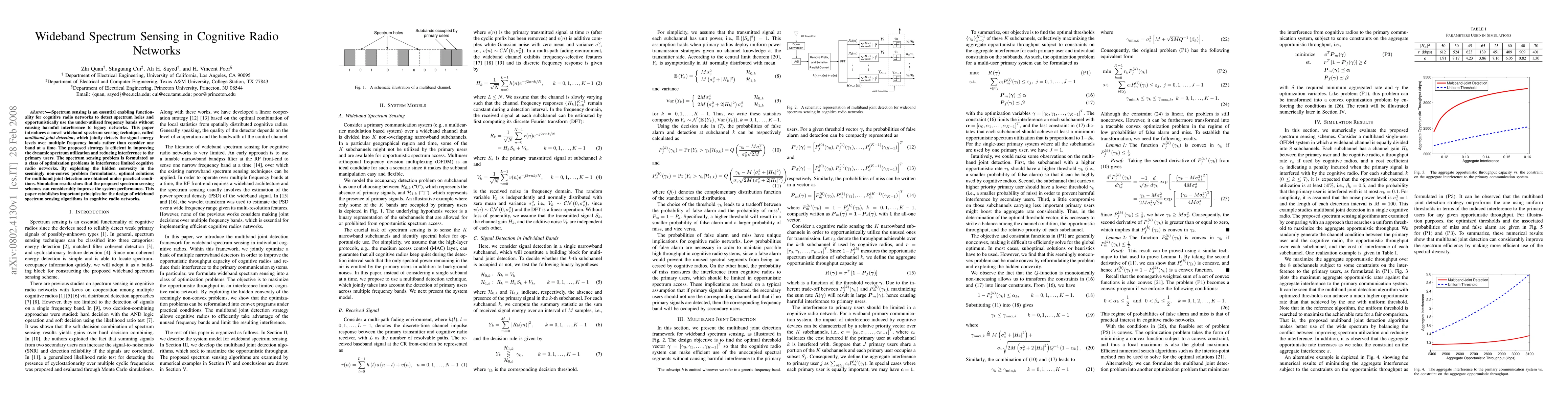 This paper proposes a novel wideband spectrum sensing technique called multiband joint detection to efficiently detect signal energy across multiple frequency bands, enhancing dynamic spectrum utilization and minimizing interference to primary users. The method formulates the sensing problem as an optimization problem, leveraging hidden convexity to achieve optimal solutions, and demonstrates significant performance improvements through simulations.
