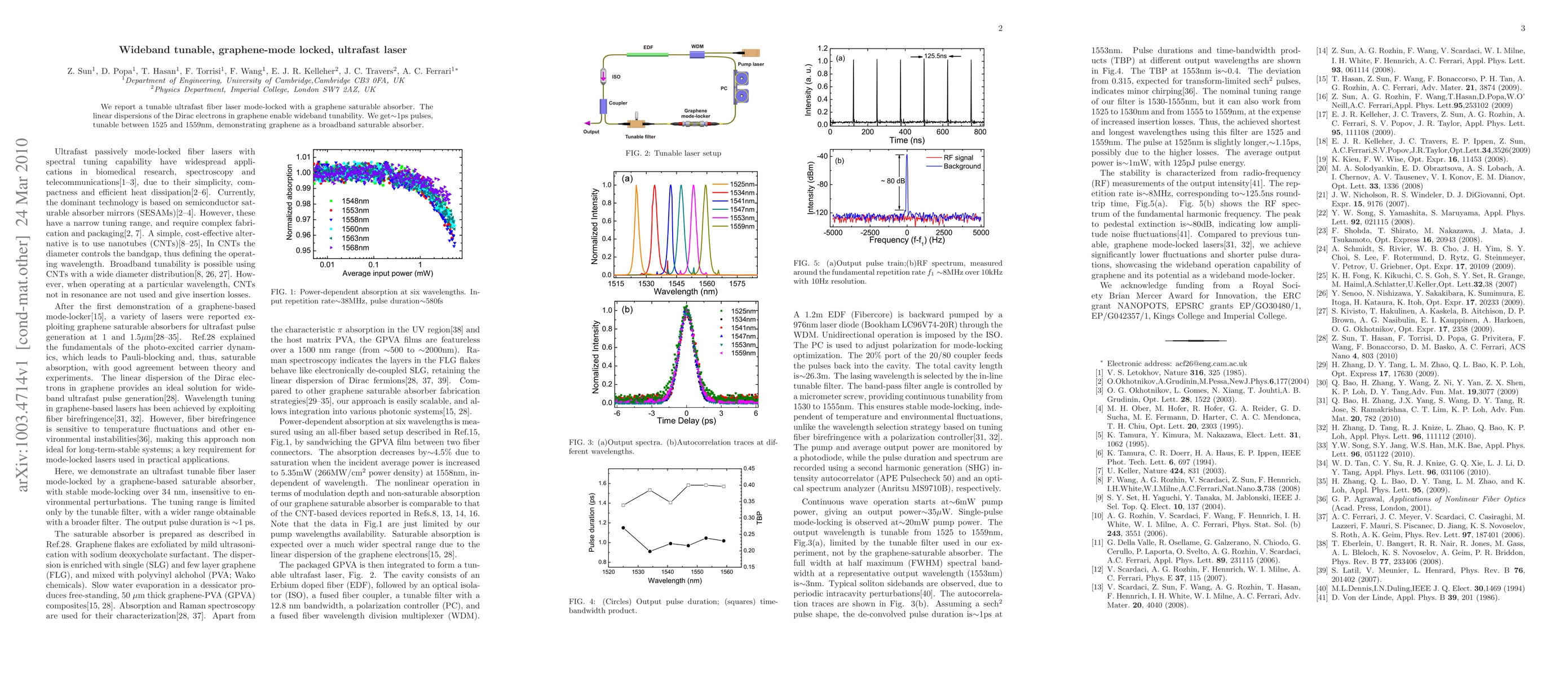 This paper presents a tunable ultrafast fiber laser mode-locked using a graphene saturable absorber, achieving ~1ps pulses and wideband tunability between 1525 and 1559nm, showcasing graphene's potential as a broadband saturable absorber.