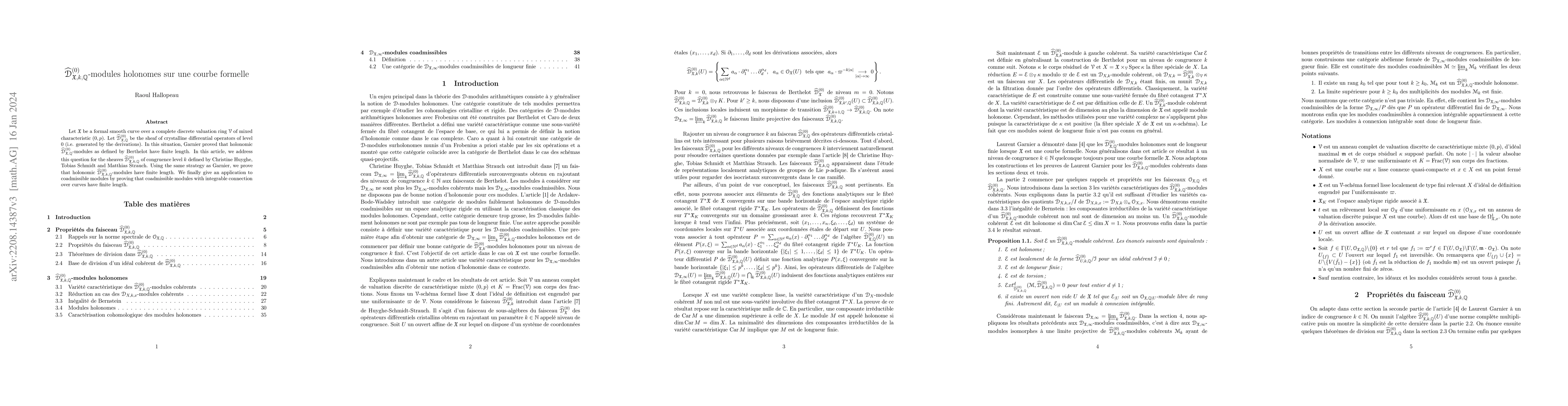 Let $\mathfrak{X}$ be a formal smooth curve over a complete discrete valuation ring $\mathcal{V}$ of mixed characteristic $(0 , p)$. Let $\widehat{\mathcal{D}}^{(0)}_{\mathfrak{X}, \mathbb{Q}}$ be the sheaf of crystalline differential operators of level 0 (i.e., generated by the derivations). In this situation, Garnier proved that holonomic $\widehat{\mathcal{D}}^{(0)}_{\mathfrak{X}, \mathbb{Q}}$-modules as defined by Berthelot have finite length. In this article, we address this question for the sheaves $\widehat{\mathcal{D}}^{(0)}_{\mathfrak{X}, k , \mathbb{Q}}$ of congruence level $k$ defined by Christine Huyghe, Tobias Schmidt and Matthias Strauch. Using the same strategy as Garnier, we prove that holonomic $\widehat{\mathcal{D}}^{(0)}_{\mathfrak{X}, k , \mathbb{Q}}$-modules have finite length. We finally give an application to coadmissible modules by proving that coadmissible modules with integrable connection over curves have finite length.