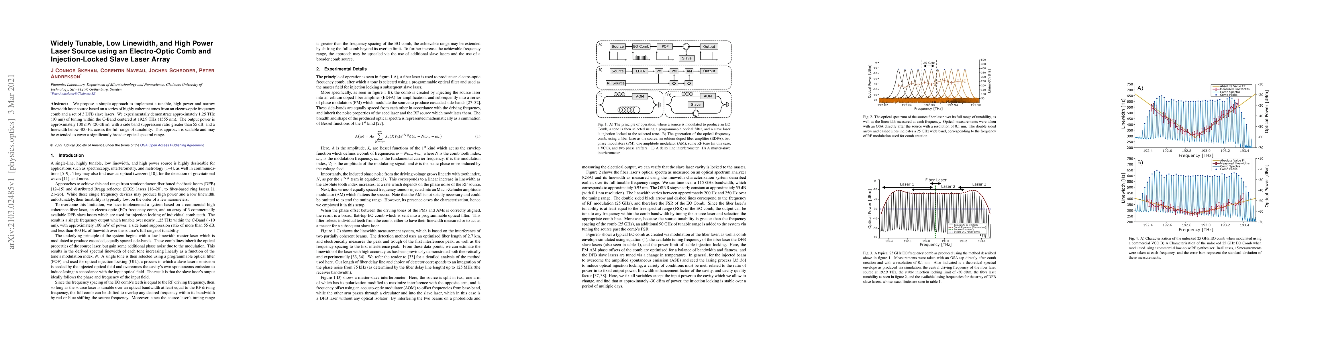 Researchers demonstrate a novel laser source with tunability of 1.25 THz, high power output, and narrow linewidth, using an electro-optic comb and injection-locked slave lasers.