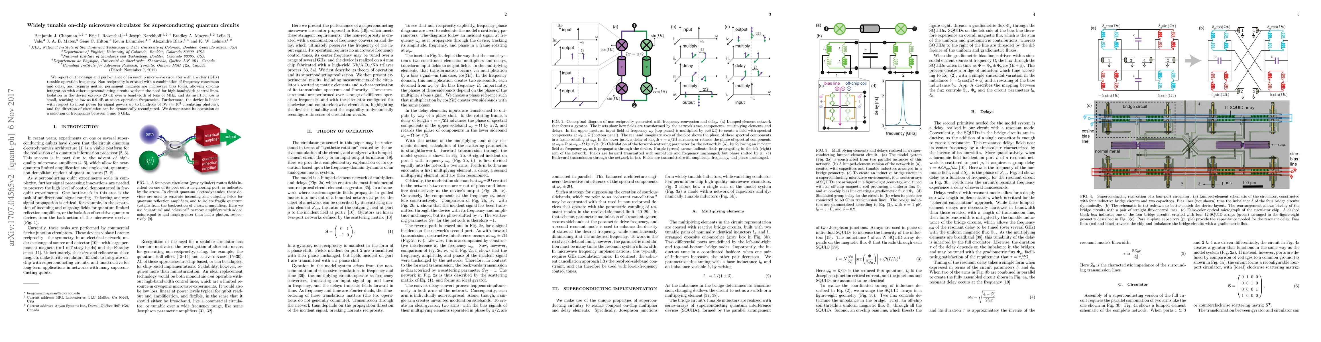 This paper presents a tunable on-chip microwave circulator for superconducting quantum circuits, utilizing frequency conversion and delay for non-reciprocity without requiring permanent magnets or microwave bias tones. The device achieves isolation over 20 dB and low insertion loss, and can be dynamically reconfigured for operation between 4 and 6 GHz.