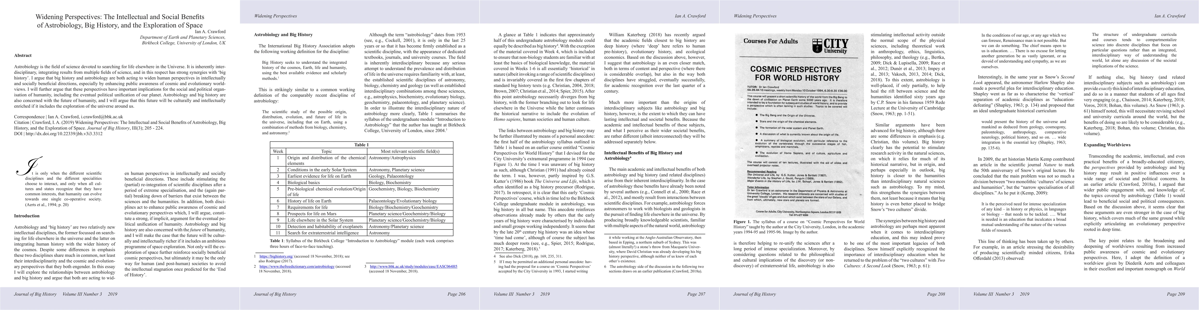 This paper explores how astrobiology and big history expand intellectual and social perspectives, fostering a deeper understanding of cosmic and evolutionary contexts. It argues that these fields can enhance public awareness and contribute to the eventual political unification of humanity, while also advocating for the cultural and intellectual enrichment that comes from exploring space.