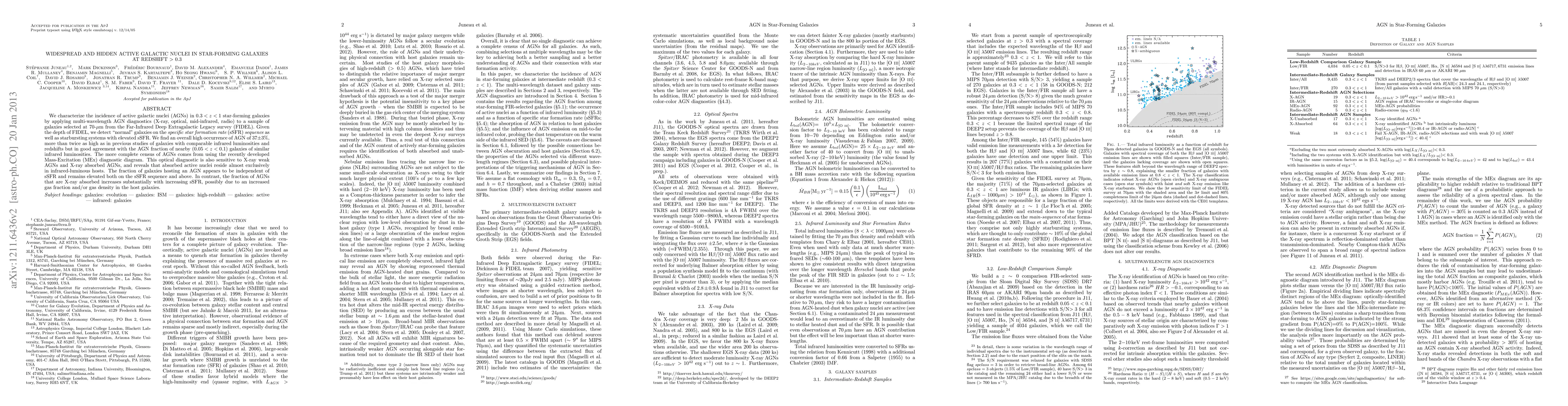 This study reveals a high incidence of 37% active galactic nuclei (AGNs) in star-forming galaxies at redshifts 0.3 < z < 1, using multi-wavelength diagnostics. The findings suggest a significant presence of AGNs, including X-ray weak and absorbed types, which are often hidden in previous studies.
