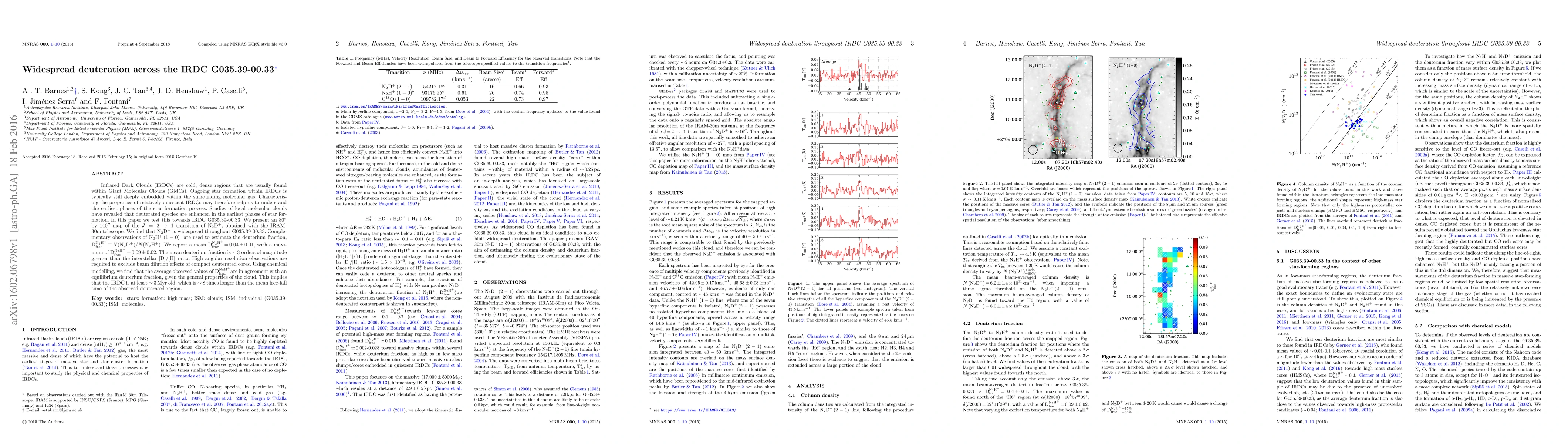 A study of the IRDC G035.39-00.33 reveals widespread deuteration, with a mean deuterium fraction 3 orders of magnitude greater than interstellar ratios, suggesting an age of ~3Myr.