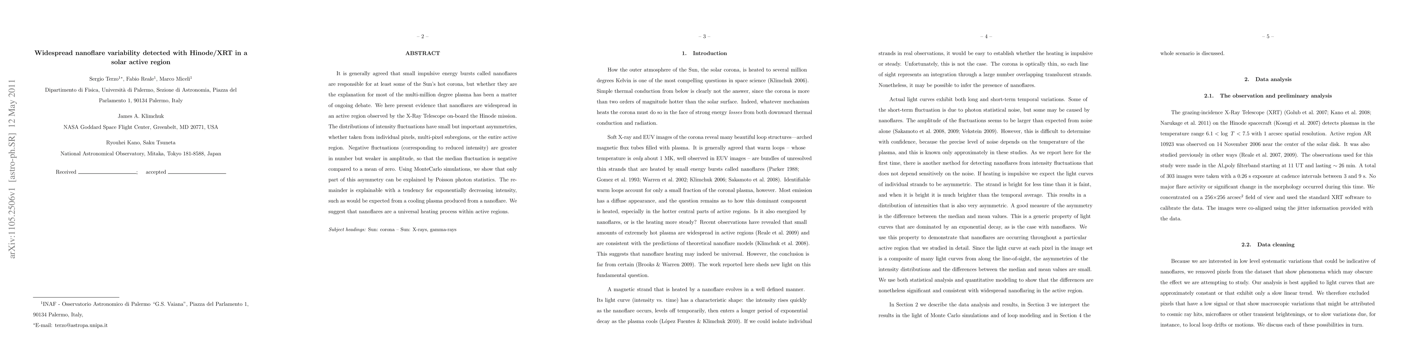 This paper presents evidence from Hinode/XRT observations that nanoflares are widespread in solar active regions, contributing to the heating of the Sun's corona. The study finds that intensity fluctuations exhibit asymmetry, suggesting a cooling plasma process, and proposes nanoflares as a universal heating mechanism.