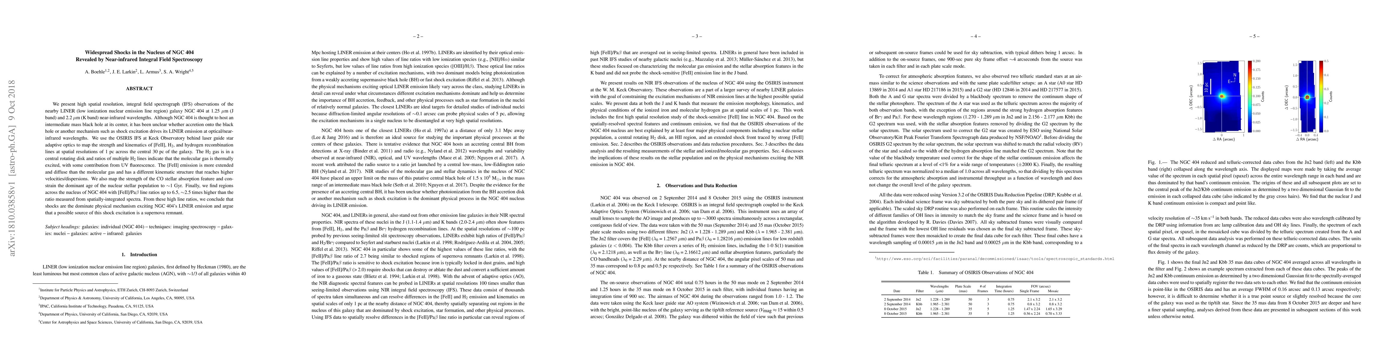 Research using near-infrared spectroscopy reveals widespread shocks in NGC 404's nucleus, suggesting a supernova remnant as the source of these shocks, which drive its LINER emission.