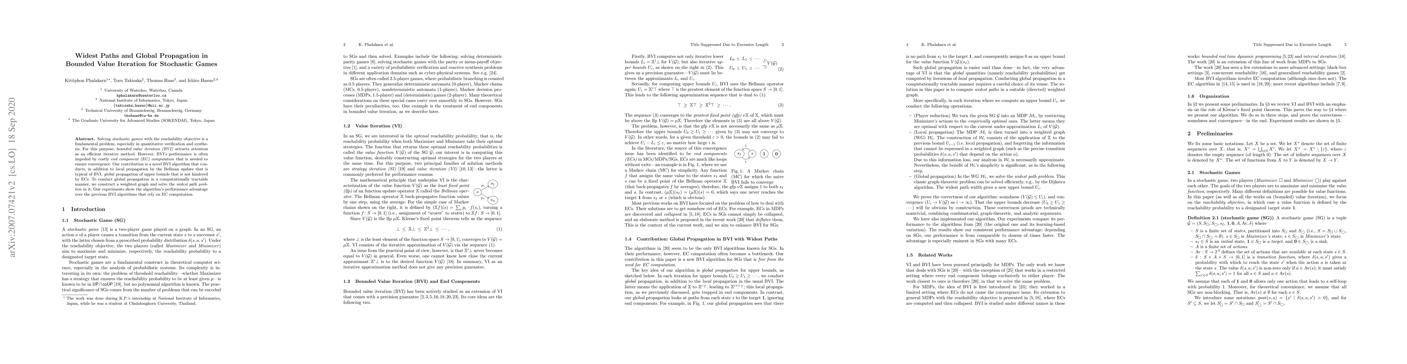 Solving stochastic games with the reachability objective is a fundamental problem, especially in quantitative verification and synthesis. For this purpose, bounded value iteration (BVI) attracts attention as an efficient iterative method. However, BVI's performance is often impeded by costly end component (EC) computation that is needed to ensure convergence. Our contribution is a novel BVI algorithm that conducts, in addition to local propagation by the Bellman update that is typical of BVI, global propagation of upper bounds that is not hindered by ECs. To conduct global propagation in a computationally tractable manner, we construct a weighted graph and solve the widest path problem in it. Our experiments show the algorithm's performance advantage over the previous BVI algorithms that rely on EC computation.
