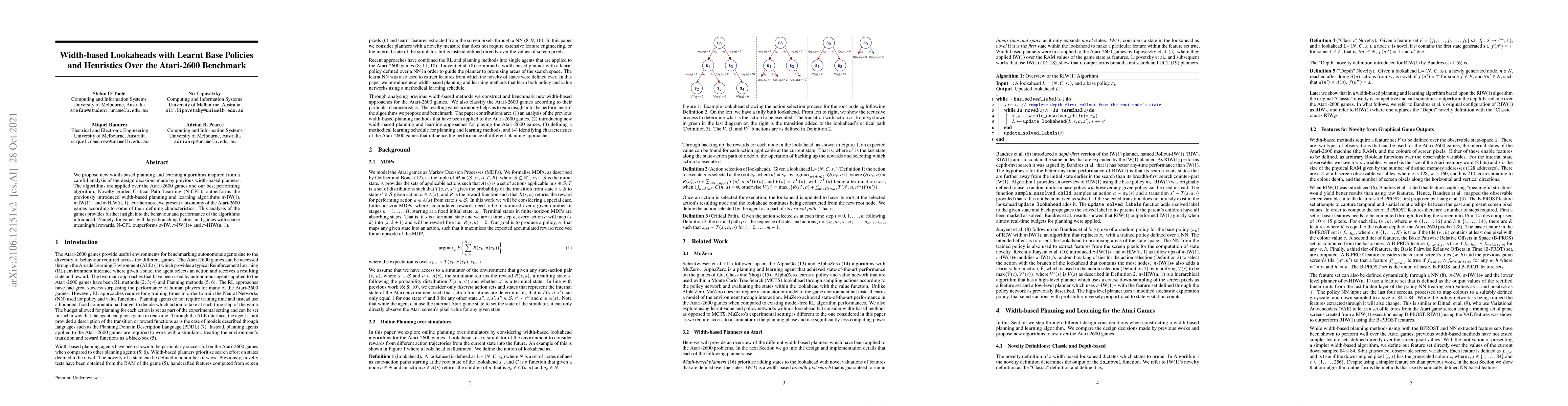 This paper introduces width-based planning algorithms with learnt base policies and heuristics, applied to Atari-2600 games, where the best algorithm, N-CPL, outperforms previous methods. It also categorizes the games based on characteristics, revealing N-CPL's superior performance in complex and sparse-reward scenarios.