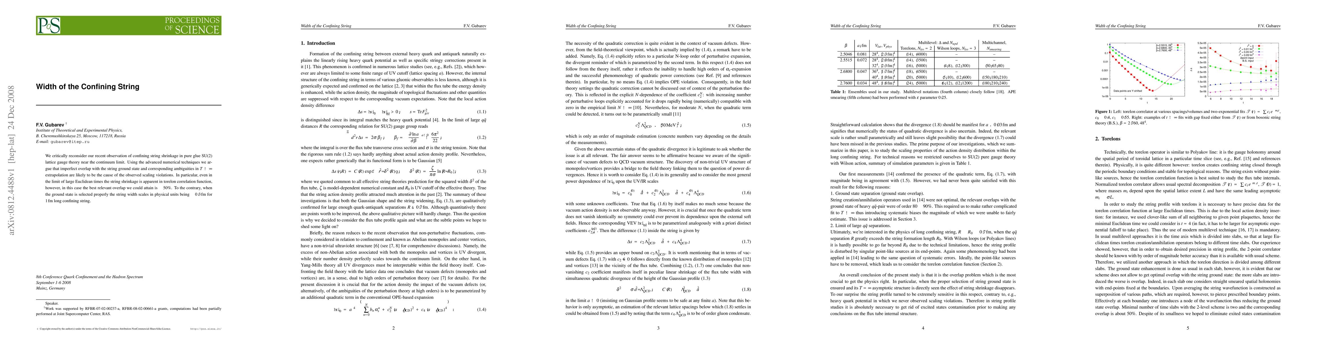 We critically reconsider our recent observation of confining string shrinkage in pure glue SU(2) lattice gauge theory near the continuum limit. Using the advanced numerical techniques we argue that imperfect overlap with the string ground state and corresponding ambiguities in T->\infty extrapolation are likely to be the cause of the observed scaling violations. In particular, even in the limit of large Euclidean times the string shrinkage is apparent in torelon correlation function, however, in this case the best relevant overlap we could attain is of order 50%. To the contrary, when the ground state is selected properly the string width scales in physical units being ~0.3 fm for 1 fm long confining string.
