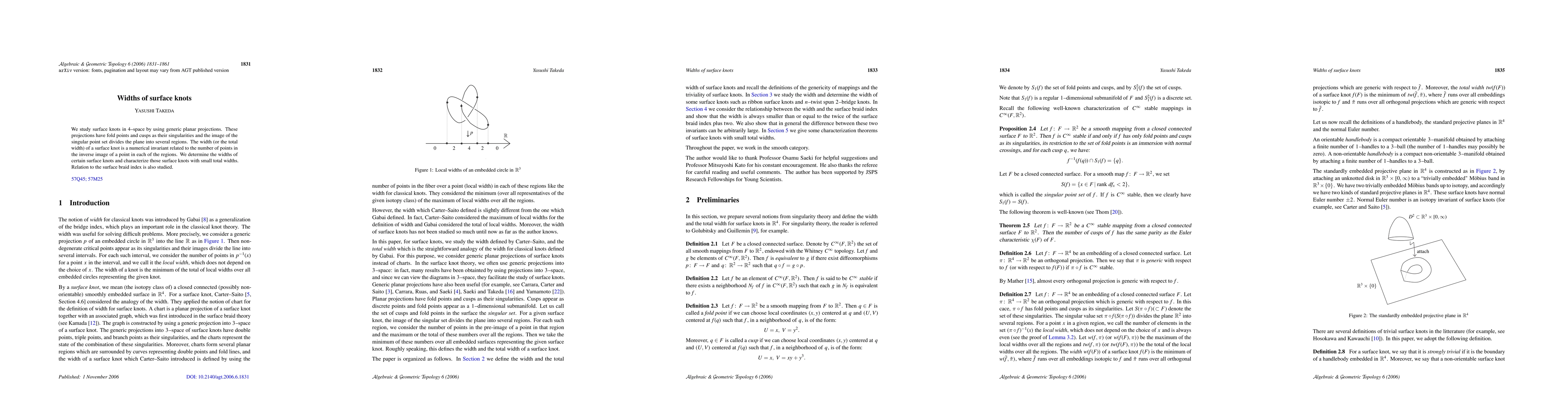 Researchers studied surface knots in 4-space using planar projections, determining widths as numerical invariants related to the inverse image of points in each region, and characterizing those with small total widths.